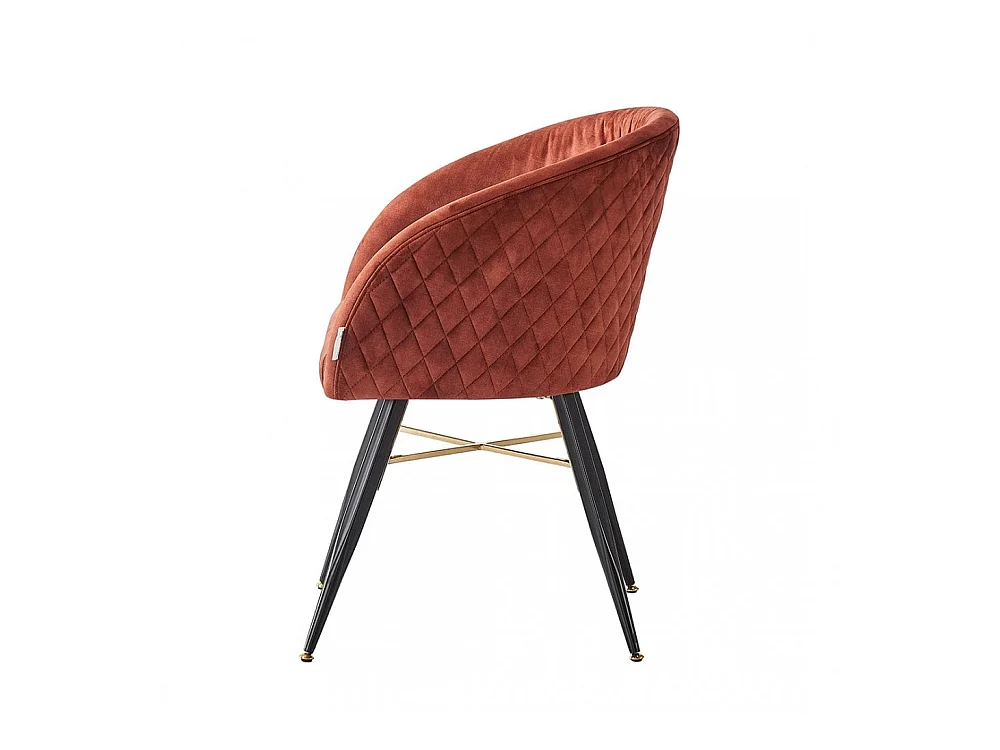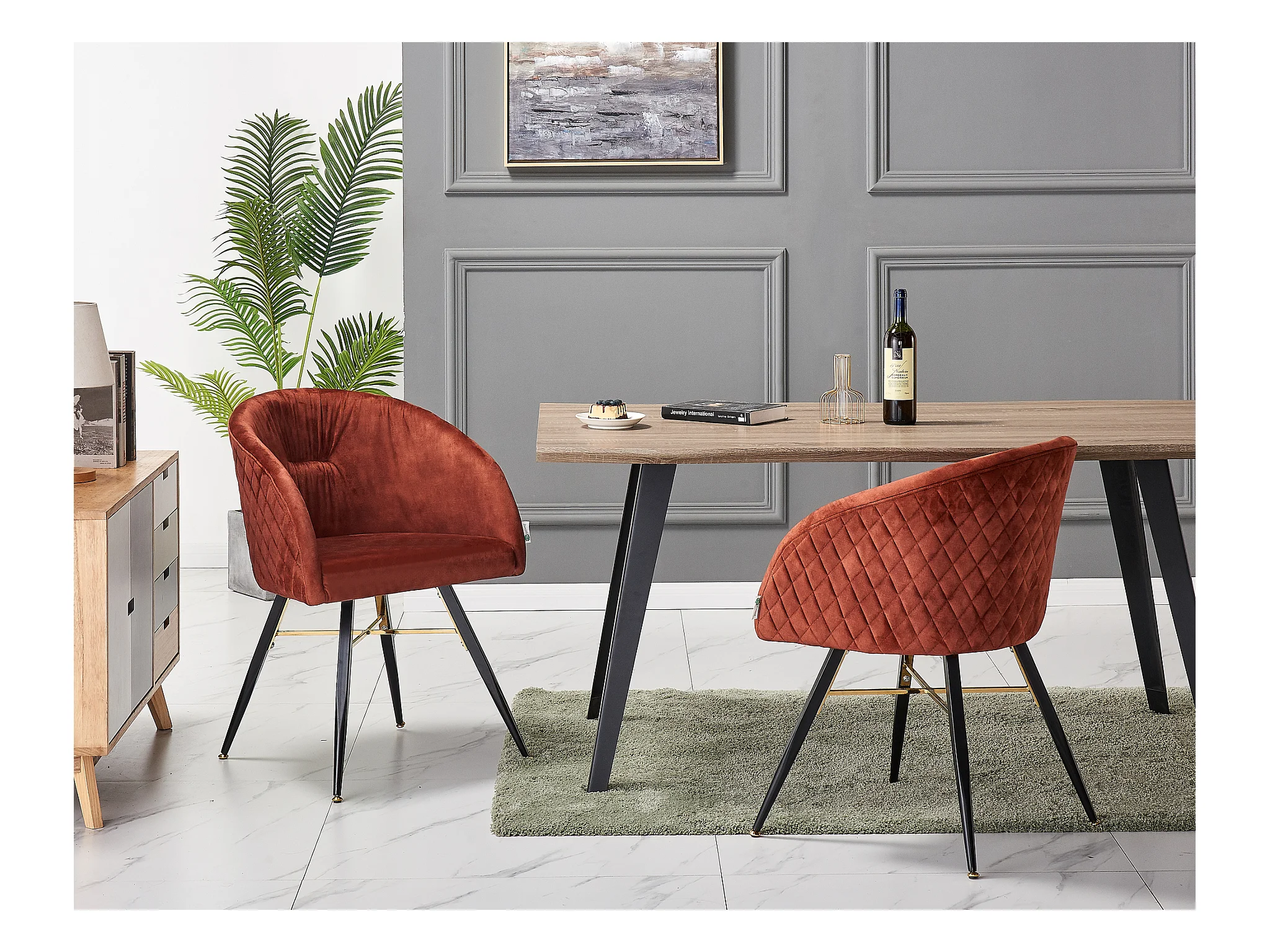 VITTORIO - Lot de 2 Fauteuils Chaises de Salle à Manger en Velours - Pieds Noirs et Dorés en Acier Inoxydable - Terracotta
