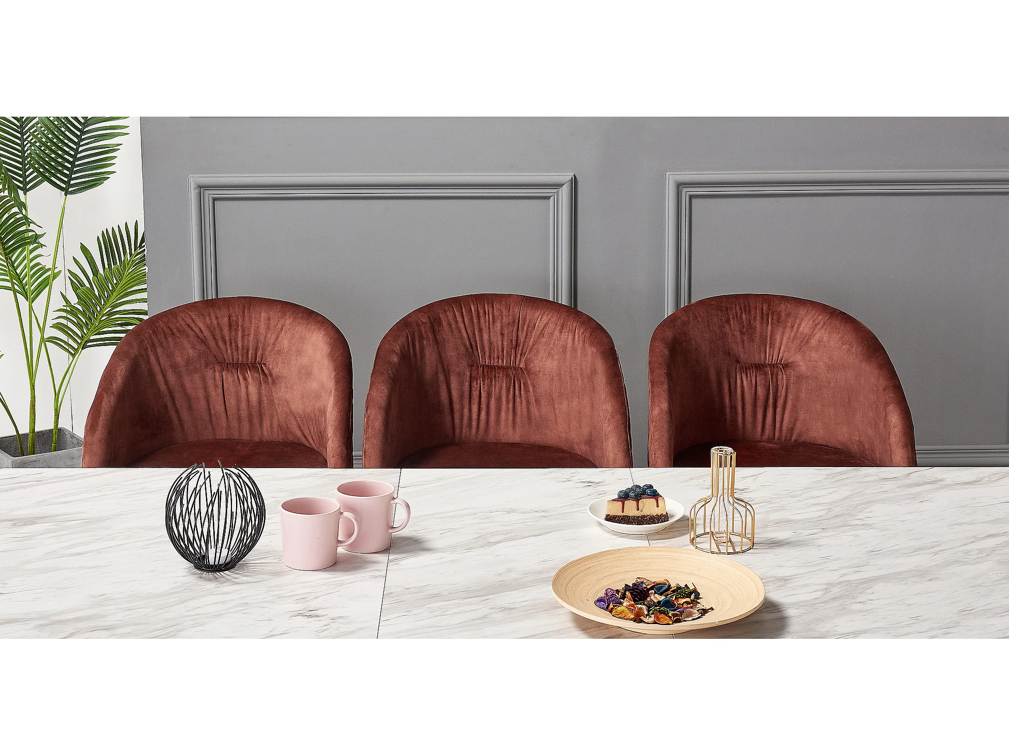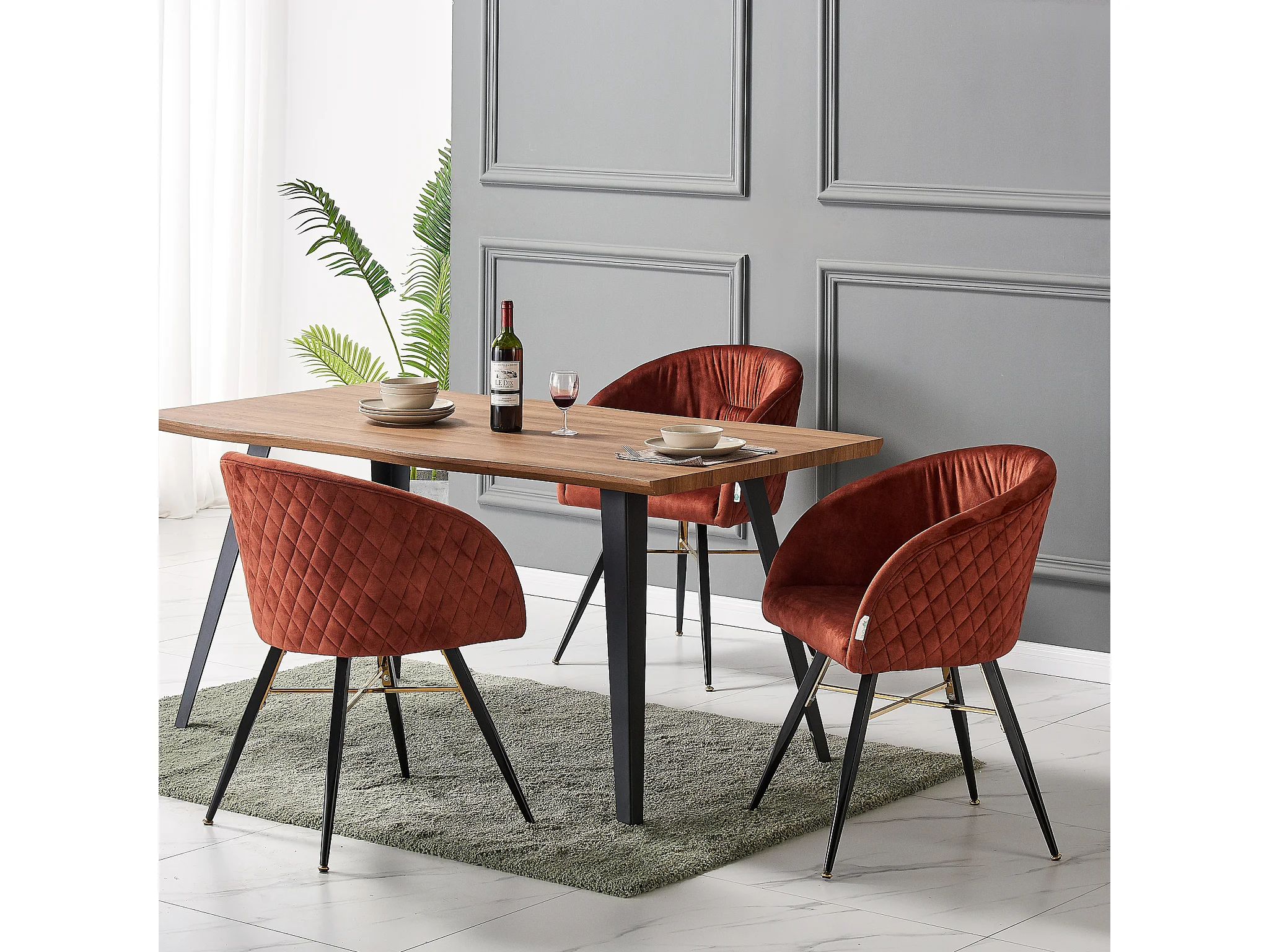 VITTORIO - Lot de 4 Fauteuils Chaises de Salle à Manger en Velours - Pieds Noirs et Dorés en Acier Inoxydable - Terracotta