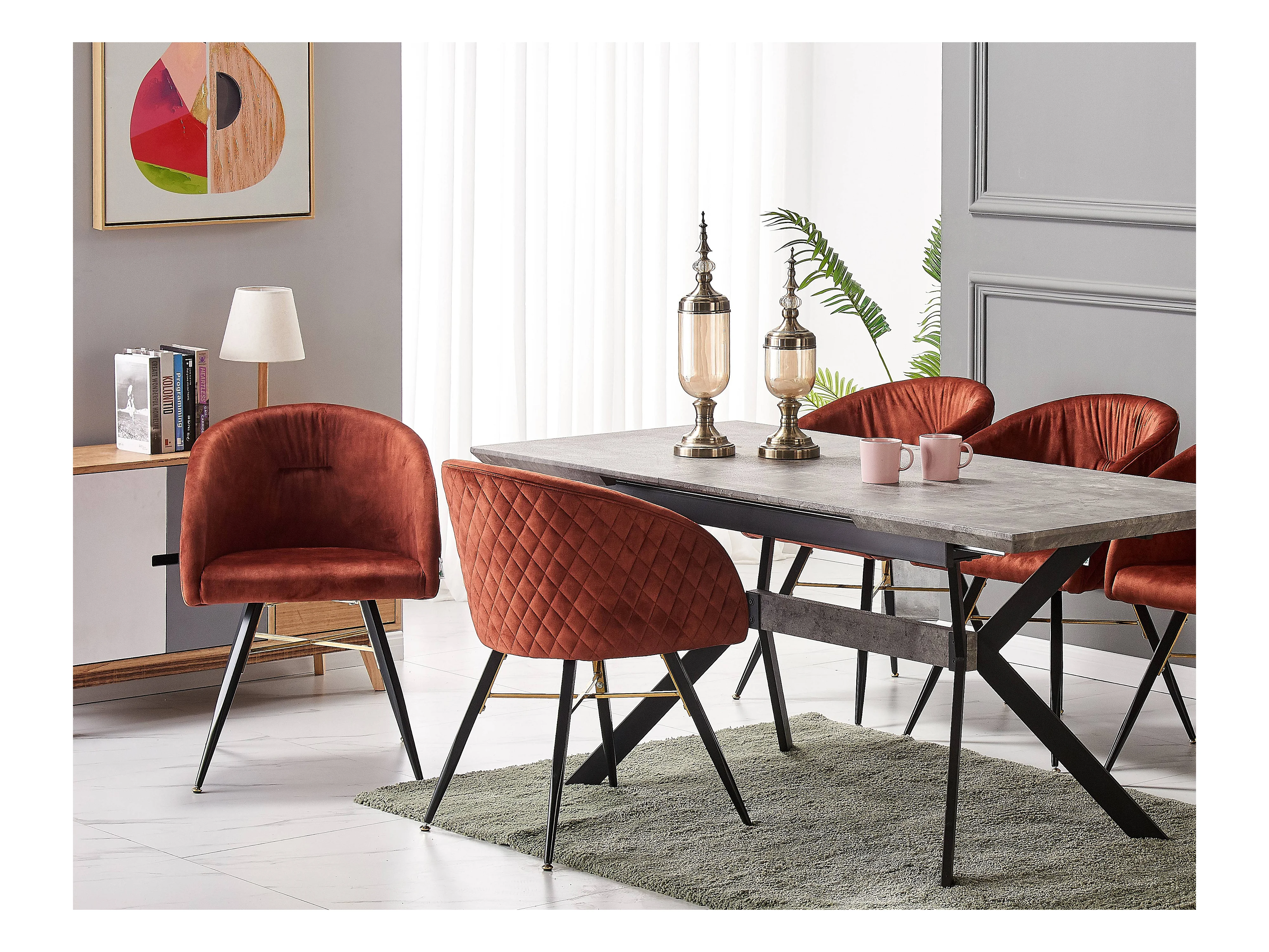 VITTORIO - Lot de 6 Fauteuils Chaises de Salle à Manger en Velours - Pieds Noirs et Dorés en Acier Inoxydable - Terracotta
