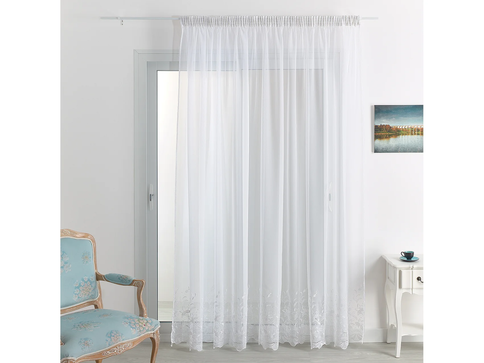 Voilage brodé cornely à galon fronceur