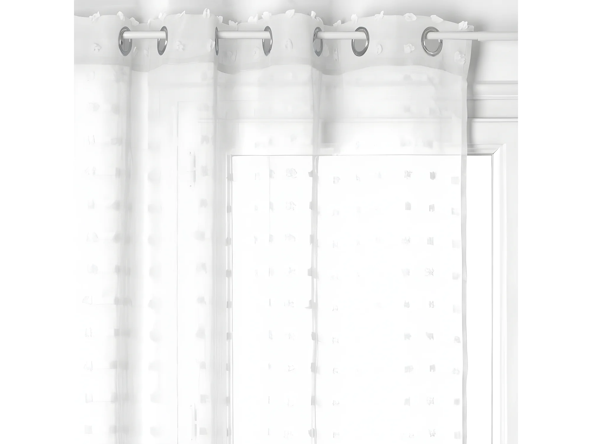 Rideau Voilage à Pompons "Poupette" 140x240cm Blanc