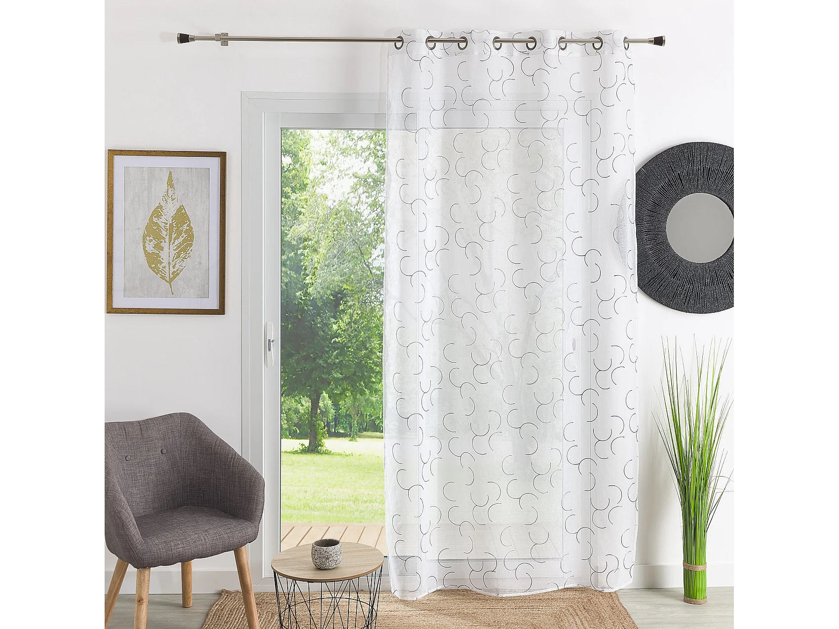 Voilage tamisant en étamine brodée