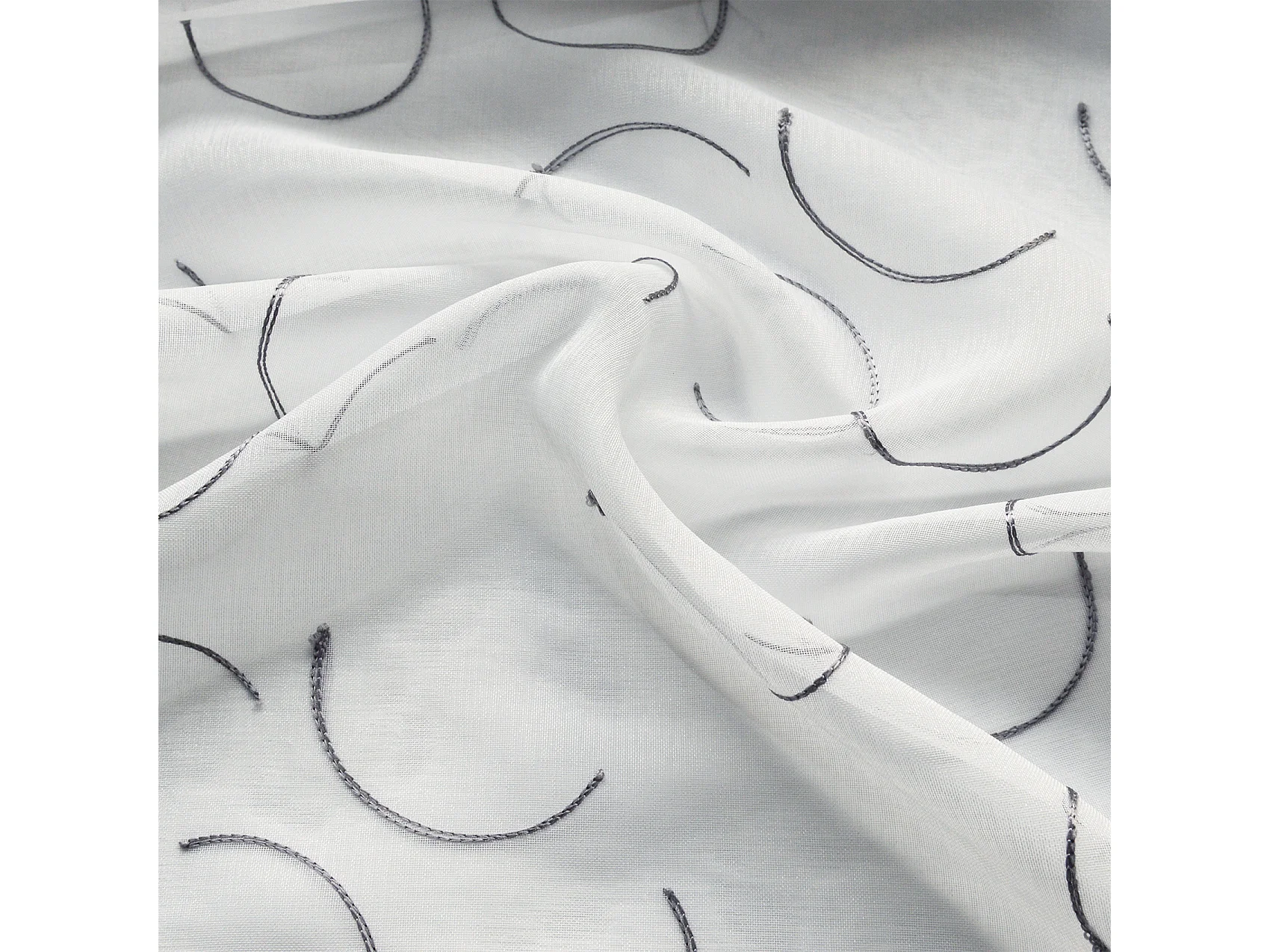 Voilage en Organza Gris Brodé Motif Brindilles