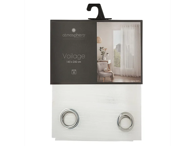 Voilage fines rayures "Liah" tamisant 140 x 240 cm Atmosphera