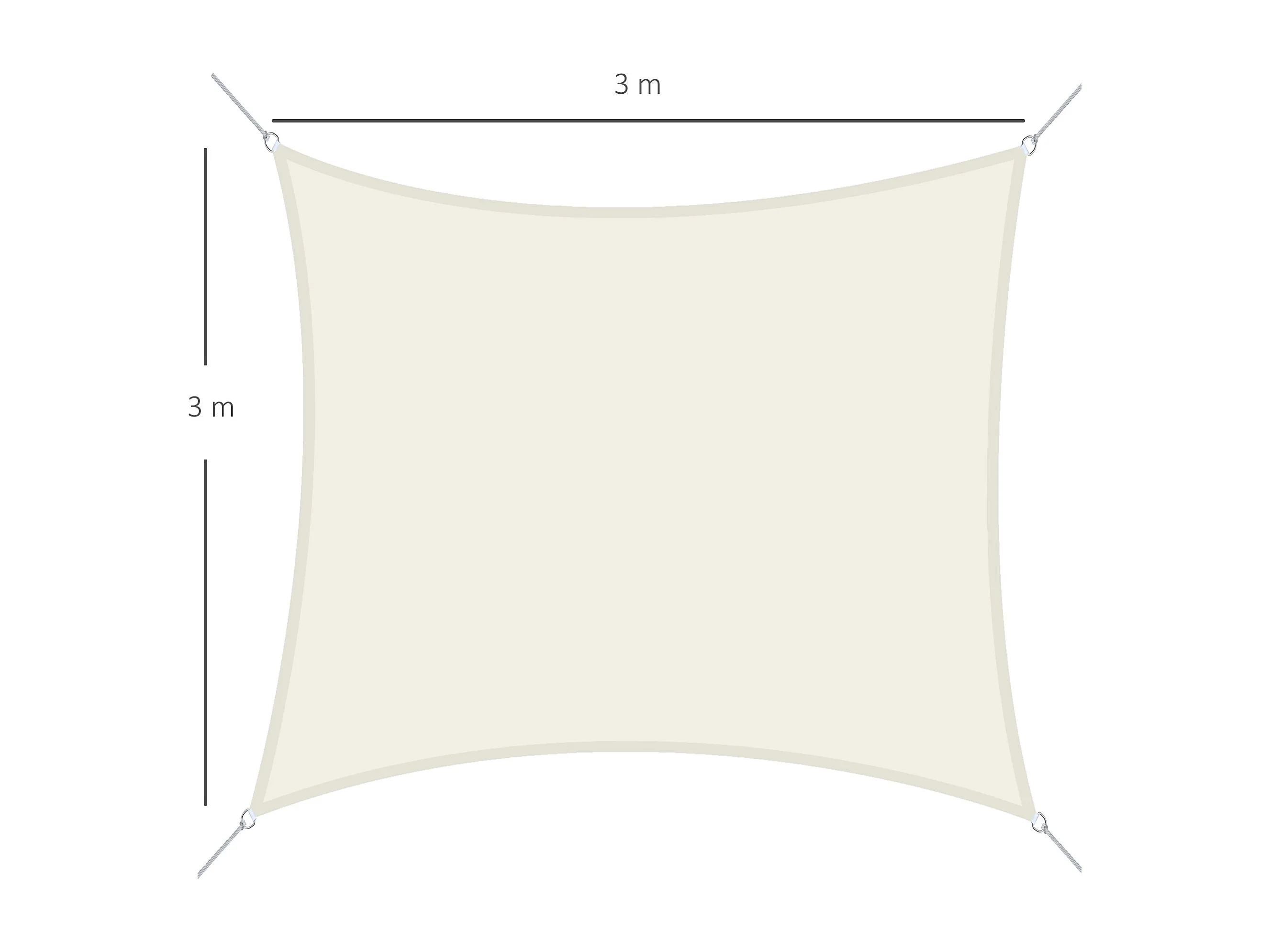 Voile d'ombrage carré 3 x 3 m polyester imperméabilisé haute densité 160 g/m² crème