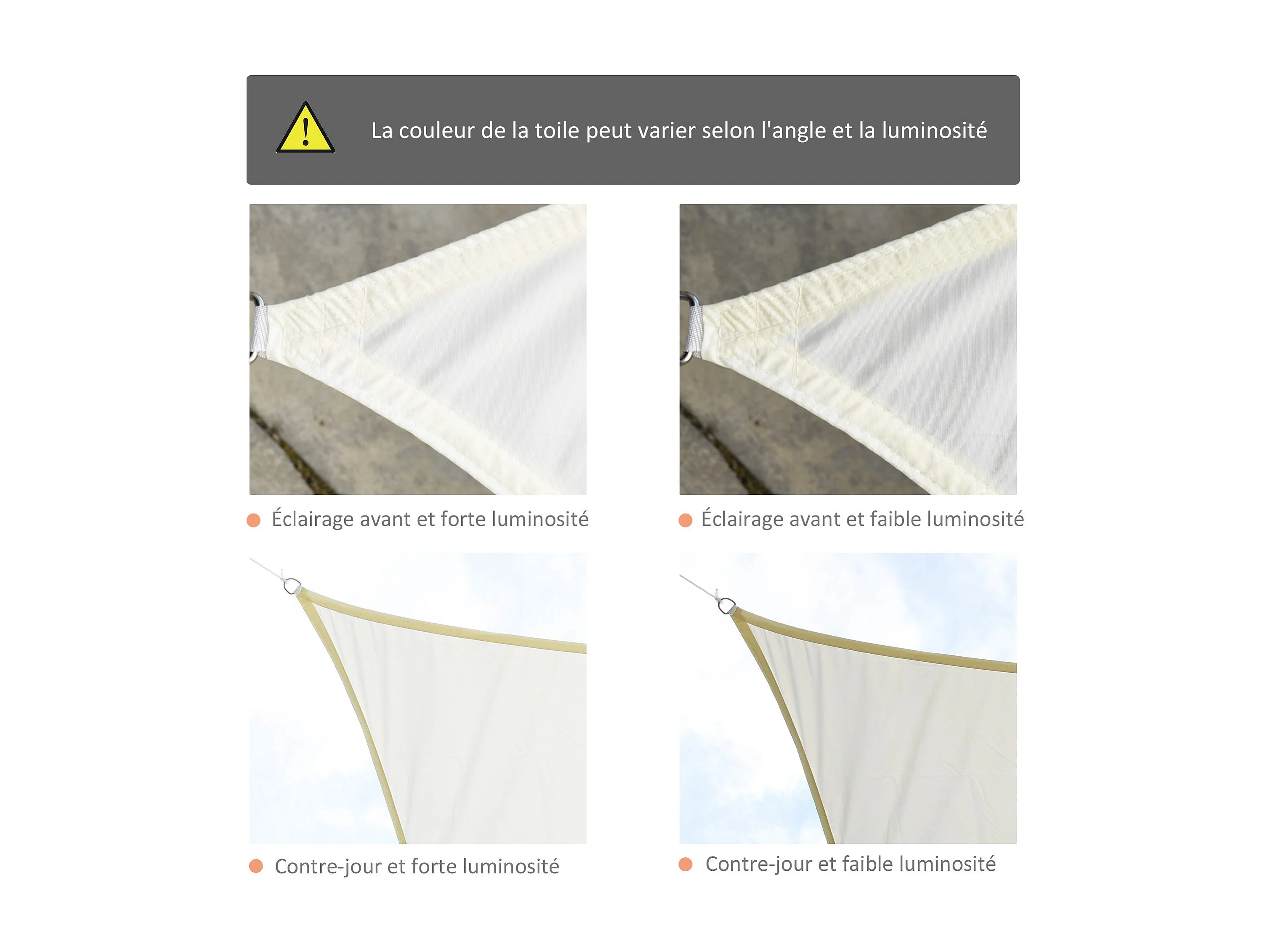 Voile d'ombrage rectangulaire 6L x 4l m polyester imperméabilisé haute densité 160 g/m² crème
