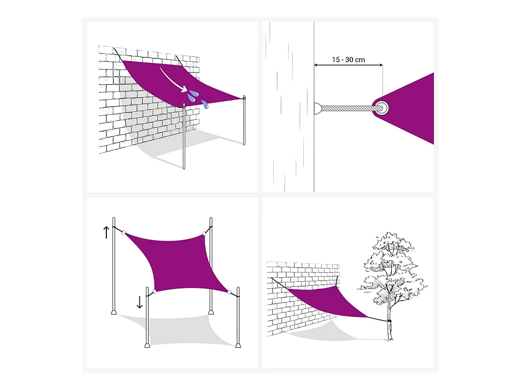 Voile d'ombrage gris clair 4x4 m 100% polyester oxford FR96358