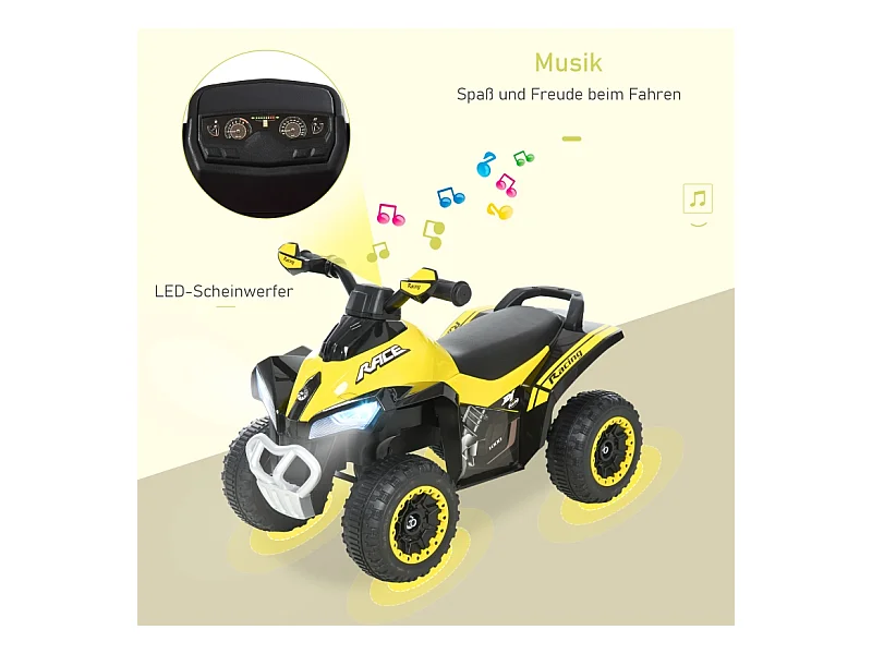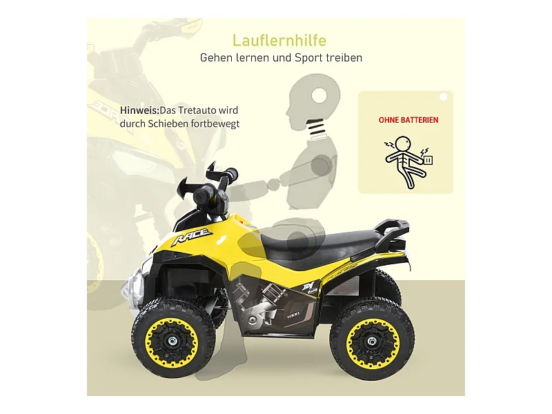 Voiture à pédales enfant avec lumière et musique, plastique et acier, jaune (67.5x38x44cm)