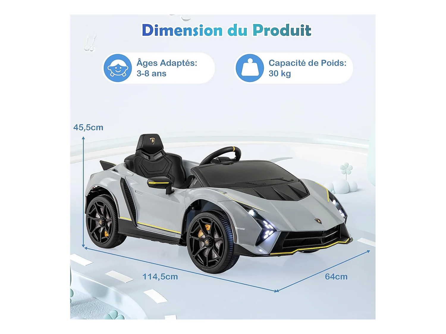 Voiture Électrique Enfants Lamborghini 12V avec Télécommande, Portes Hydrauliques, Lumières LED & Musique - Gris