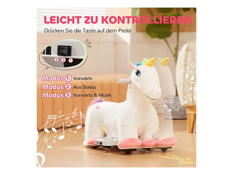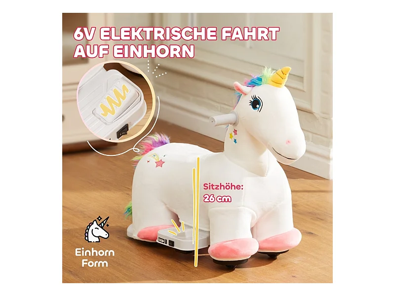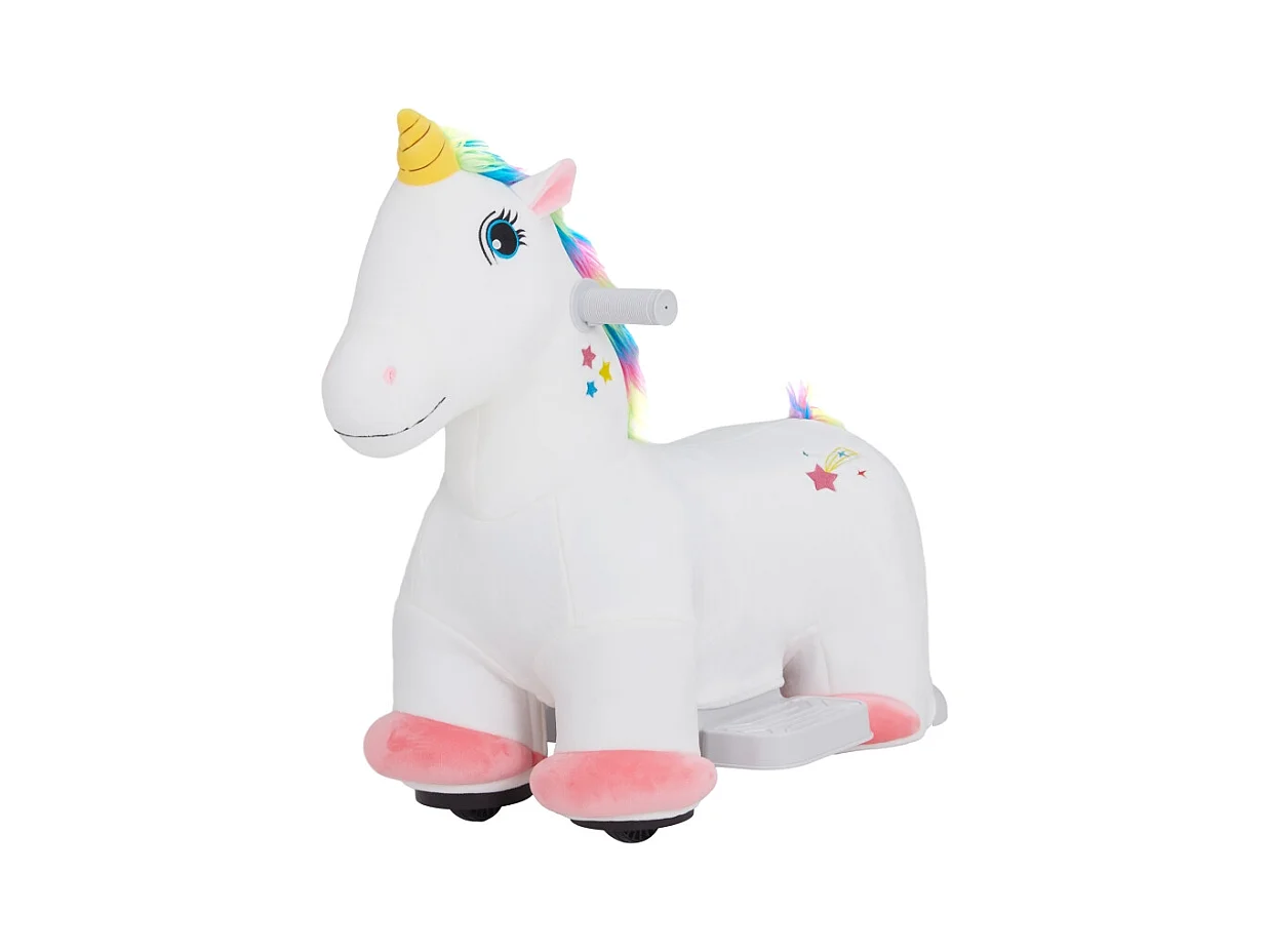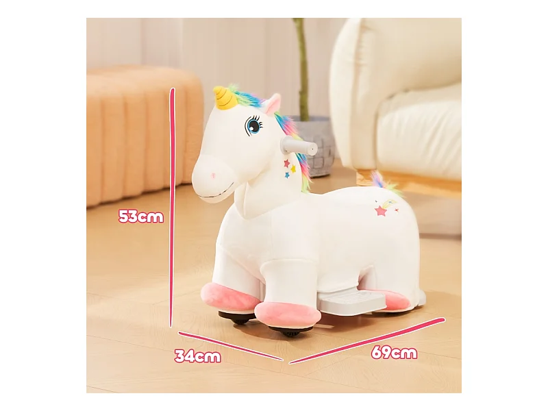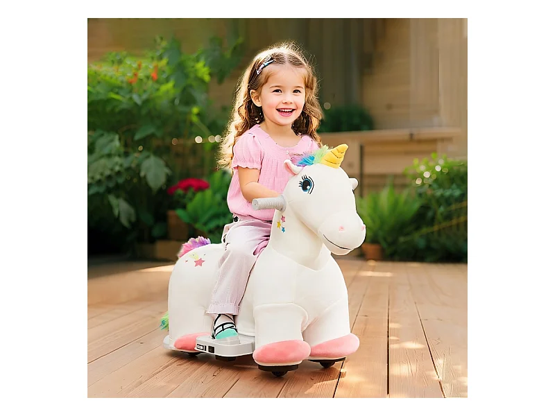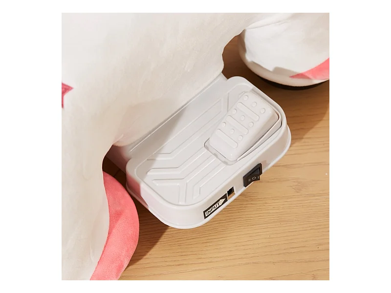 Voiture électrique licorne pour enfants 6V, jouet à pédales avec musique, polyester, blanc (69x34x53cm)