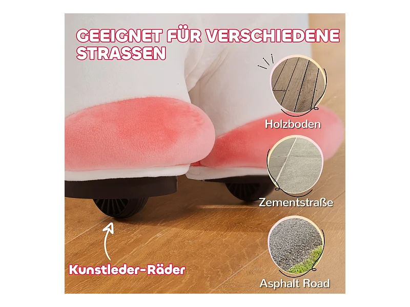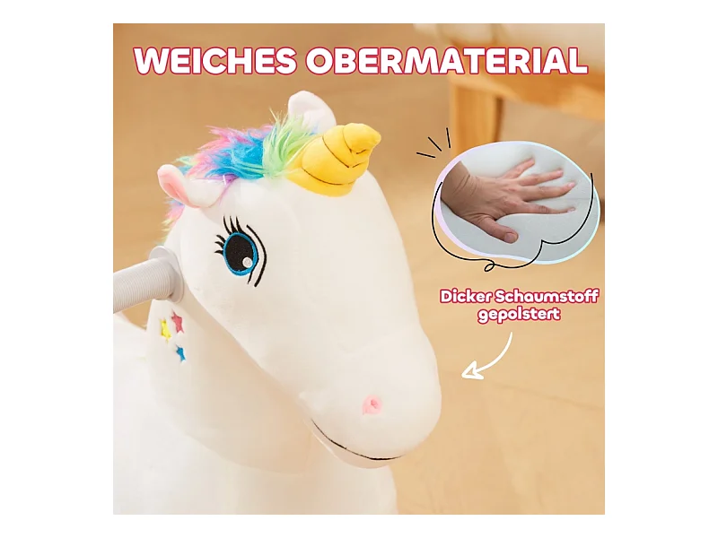 Cheval à bascule en peluche rose avec sons d'animaux, acier, pour enfants (65x32.5x61cm)