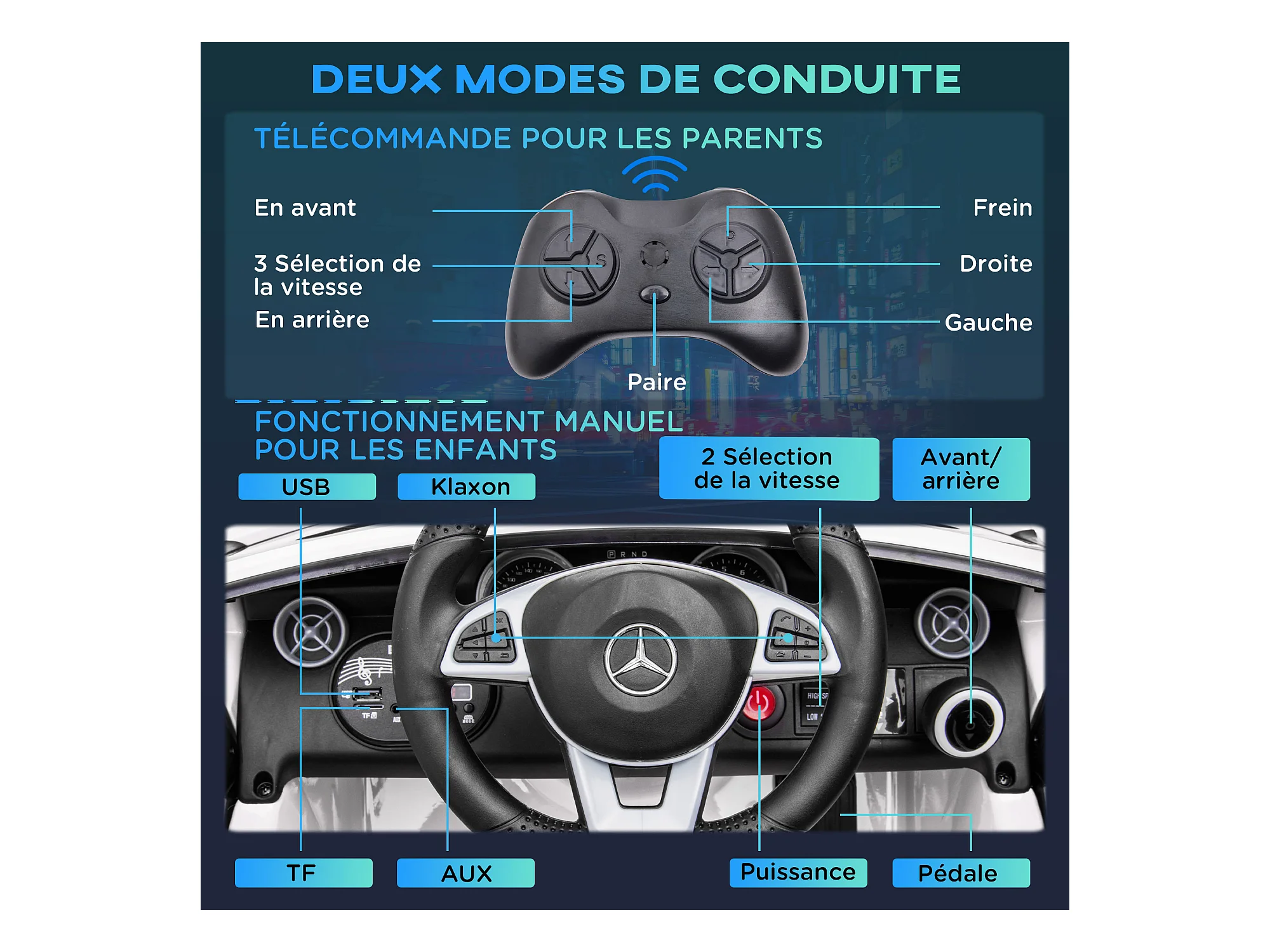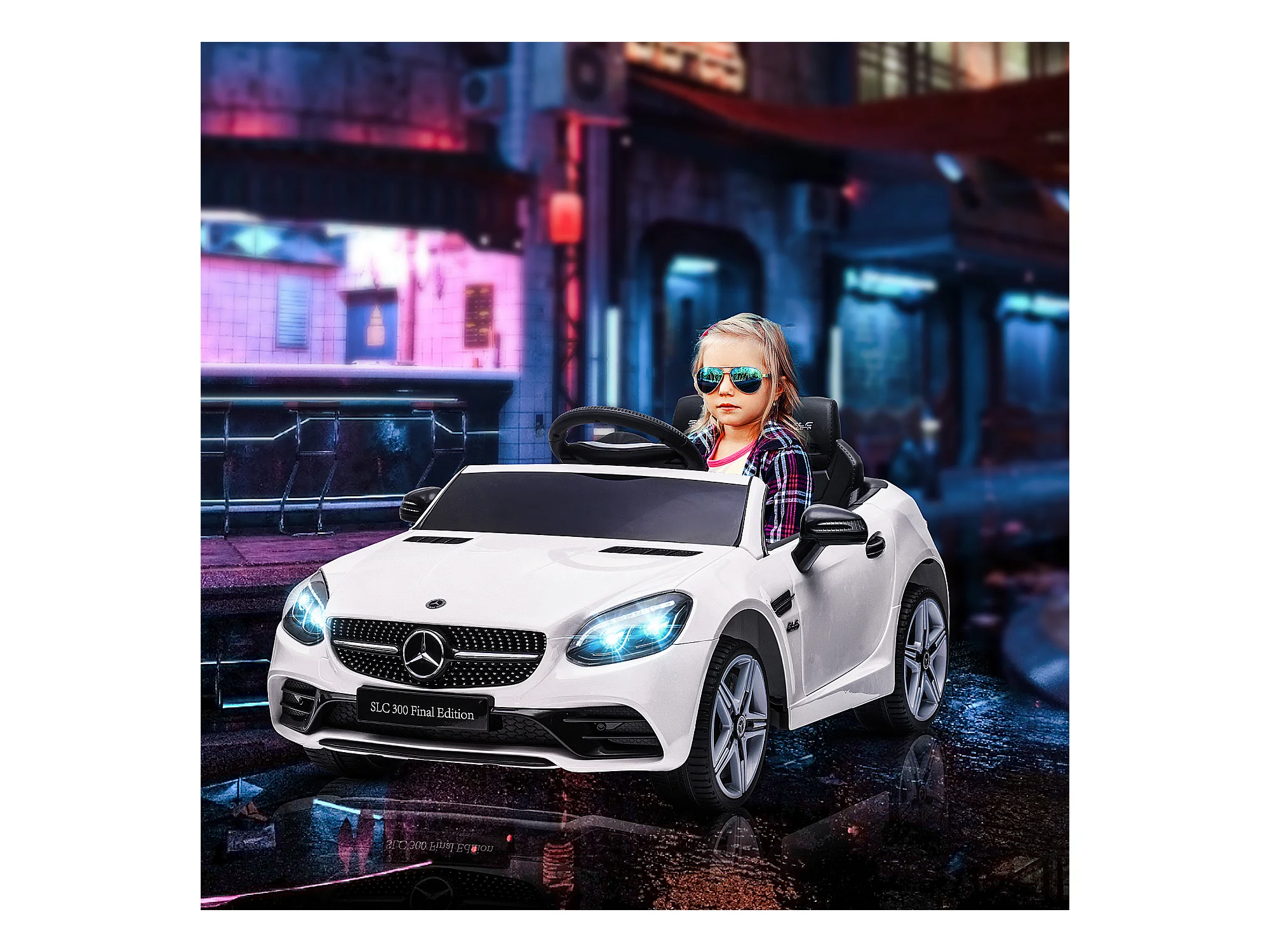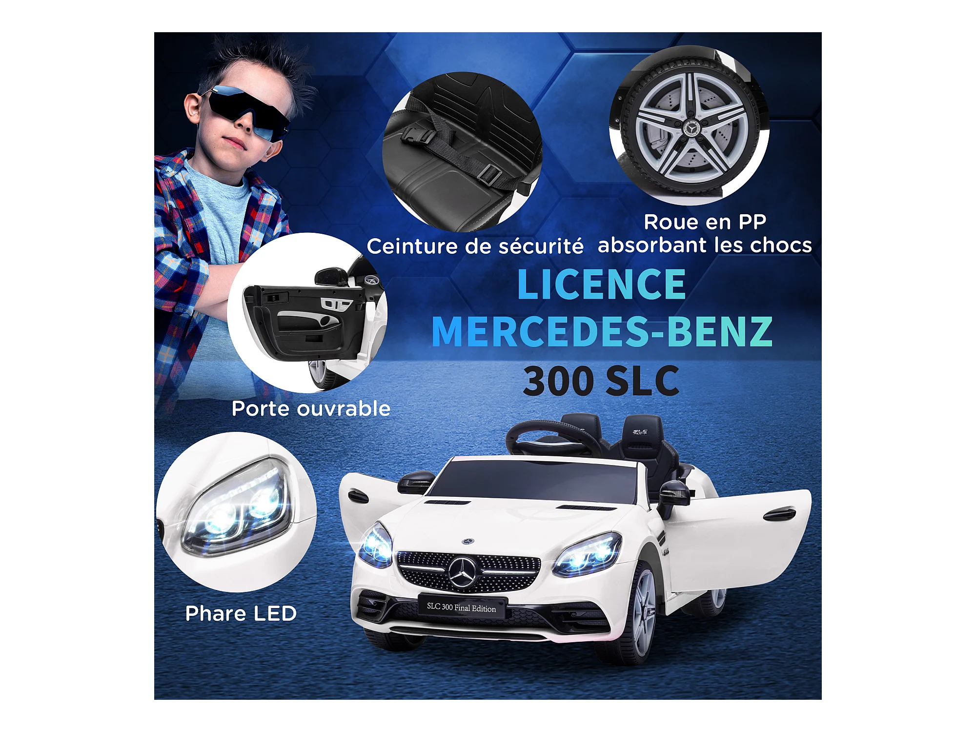 Voiture véhicule électrique enfant 6 V 5 Km/h max. télécommande effets sonores + lumineux Mercedes SLC 300 blanc
