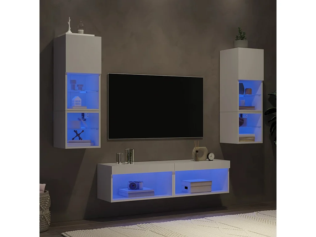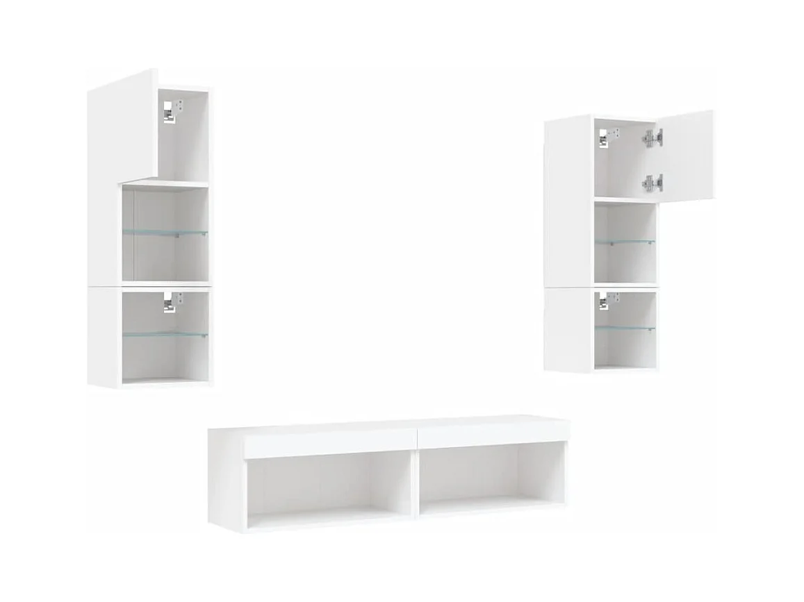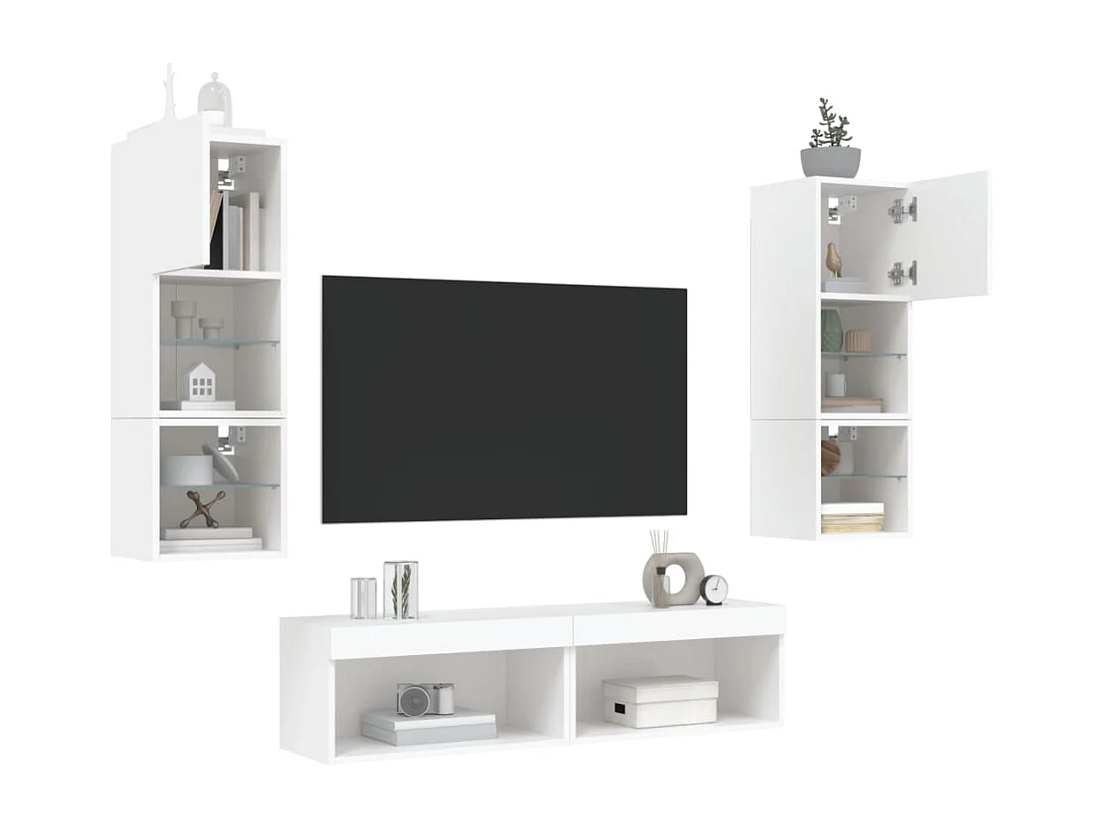 Volar Unités murales TV avec LED 6 pcs blanc bois d'ingénierie