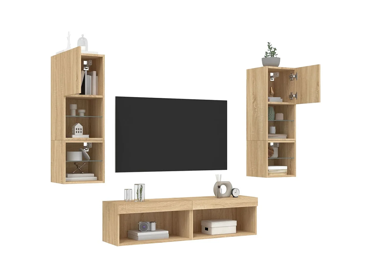 Volar Unités murales TV avec LED 6 pcs chêne sonoma bois d'ingénierie