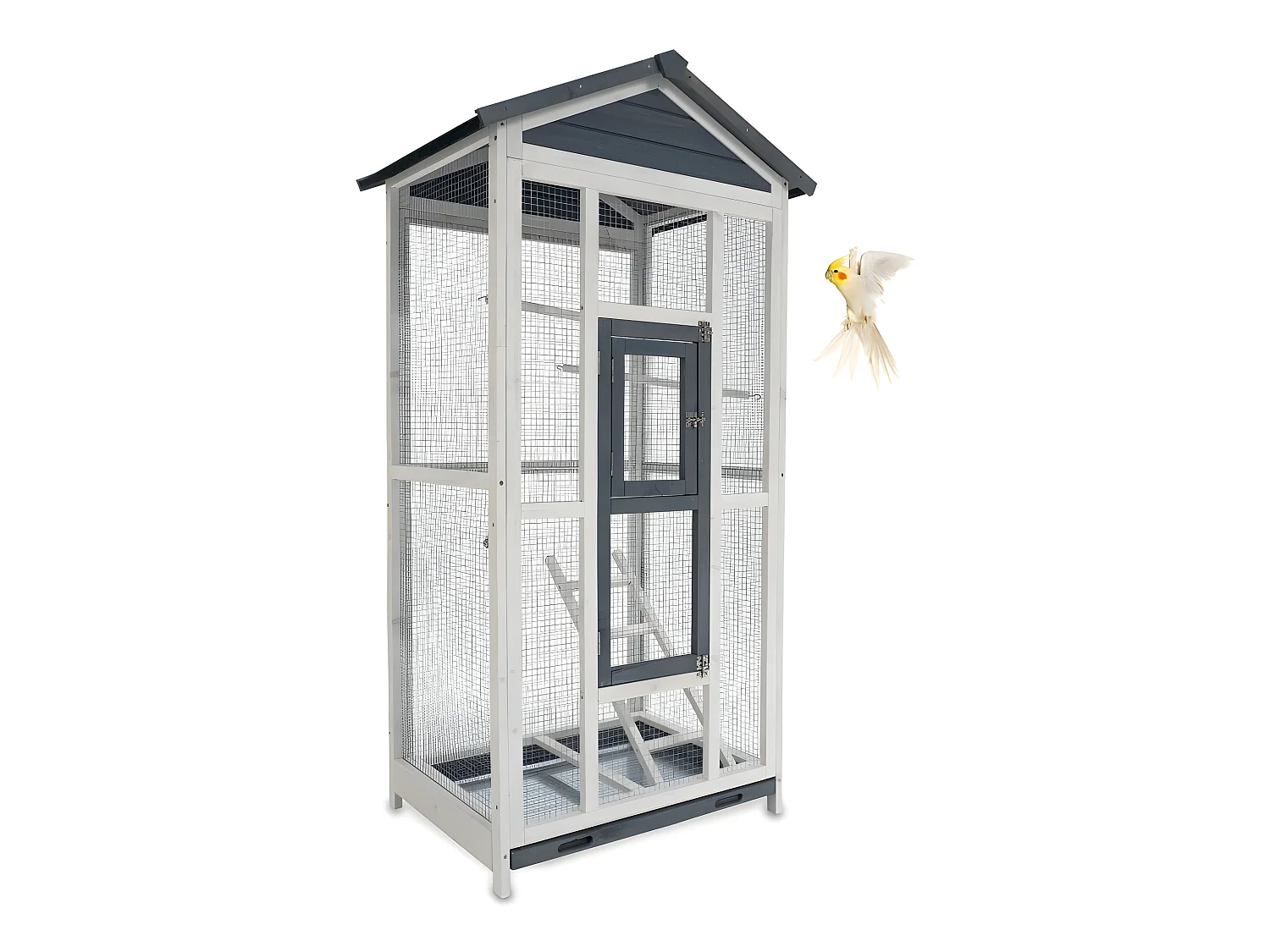 Volière Cage a oiseaux en bois de haute qualite 72 x 63 x 168 cm exterieur et interieur BB LOISIR