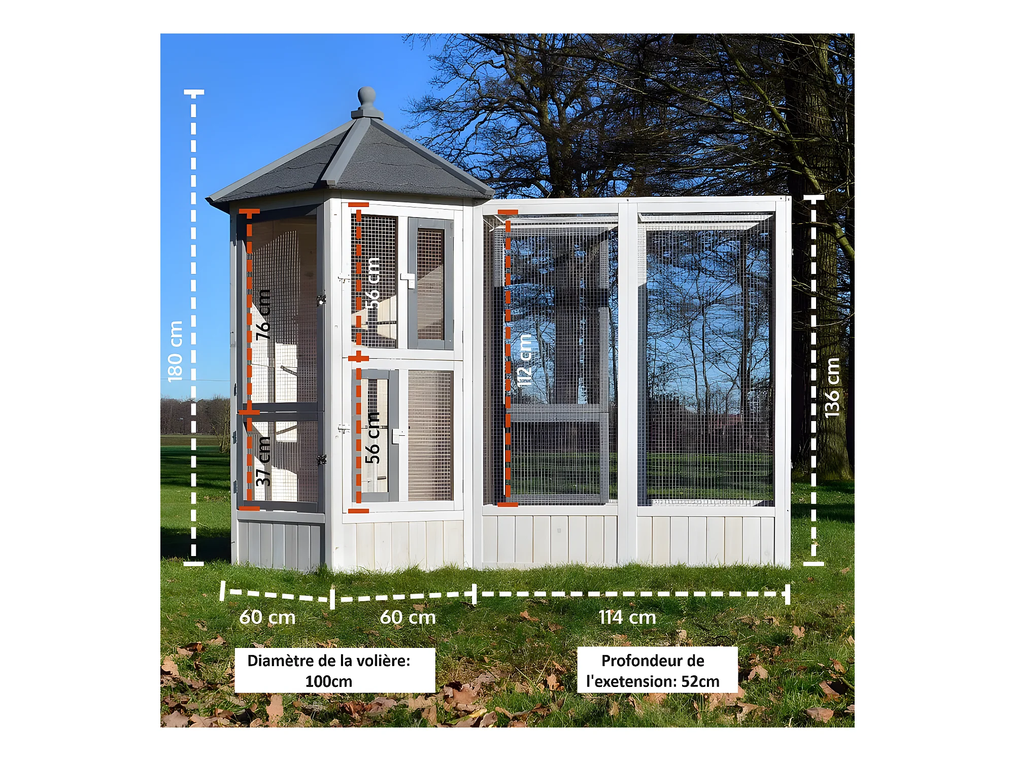 Volière Cage à oiseaux en bois de haute qualité Maison principale + Extension –Modèle ‘’Luise 309+310’’