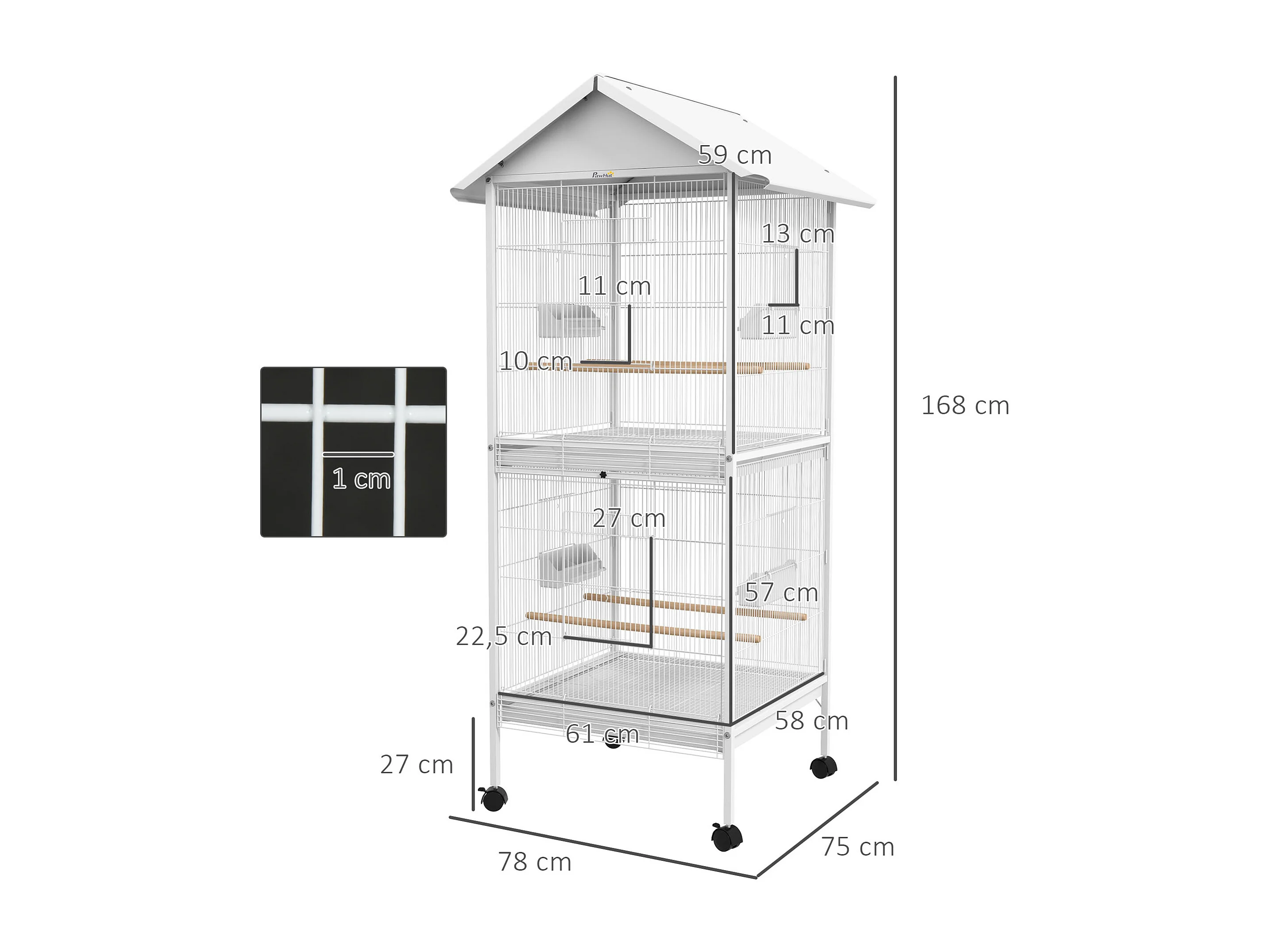 Volière cage à oiseaux sur roulettes design maison mangeoires perchoirs 10 portes plateaux excréments amovibles acier blanc