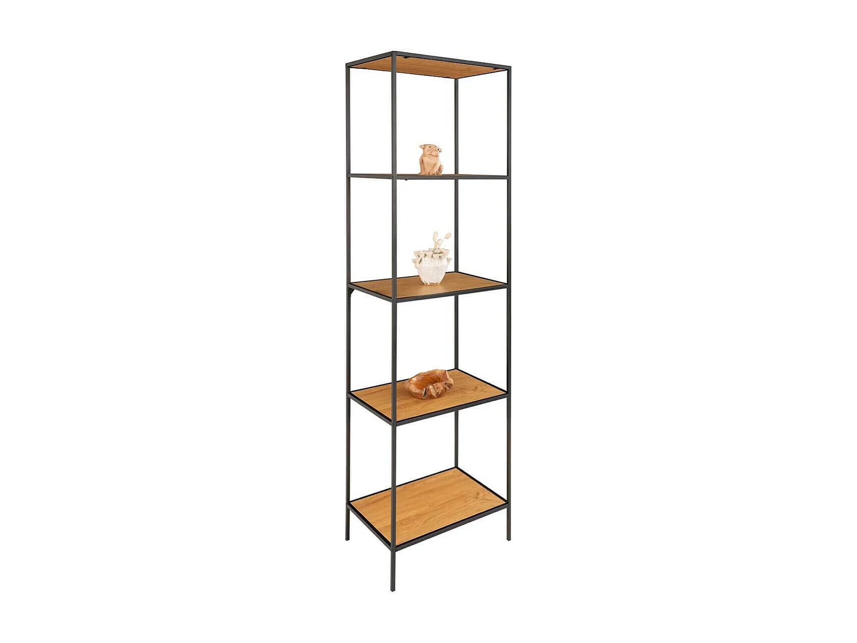VOLLRAD - Etagère 5 Plateaux Acier Noir et Bois Naturel