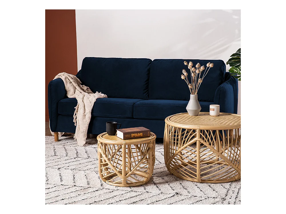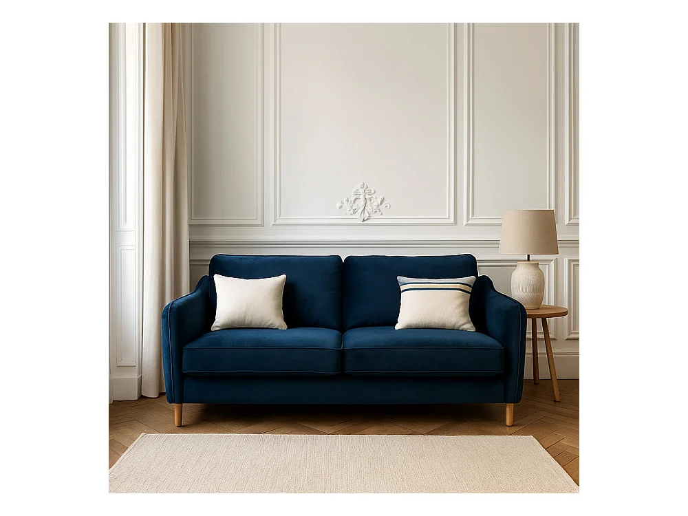 Vornay - Canapé convertible express 2 places en velours - Bleu nuit