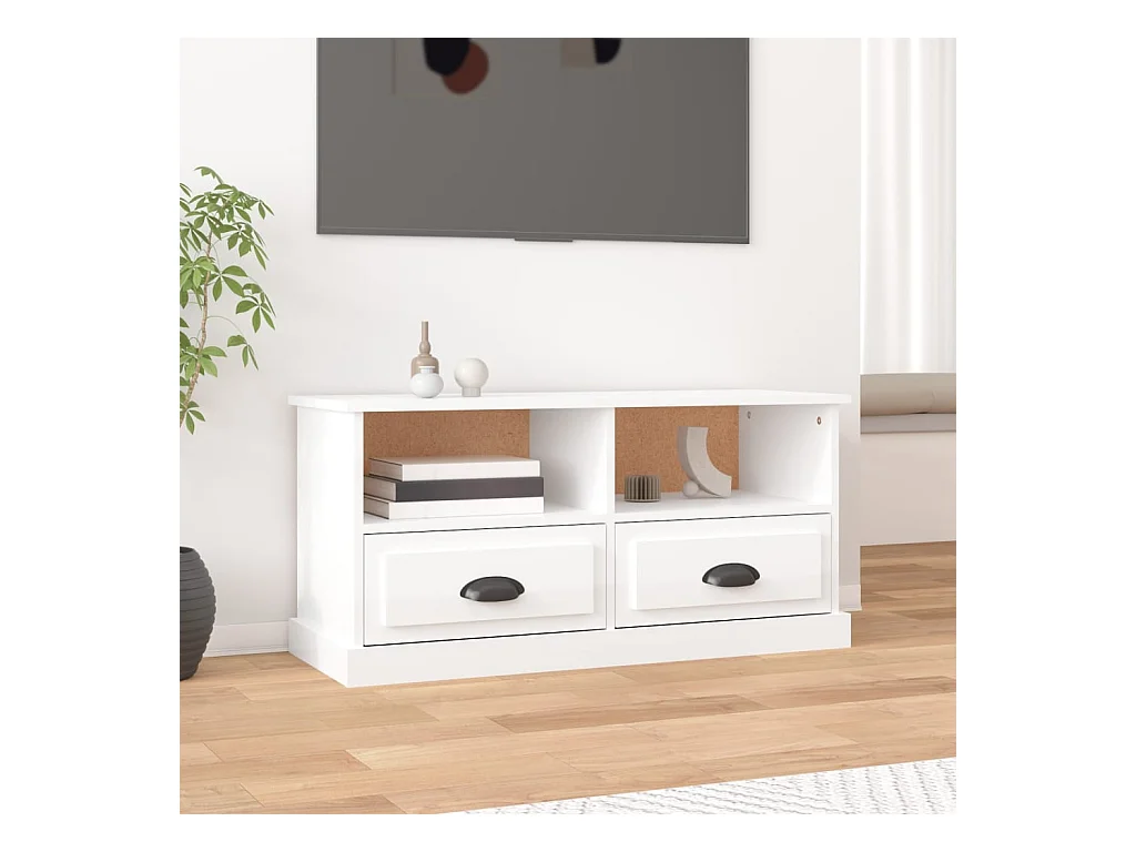 Lin Meuble TV blanc 100x34,5x44,5 cm bois d'ingénierie