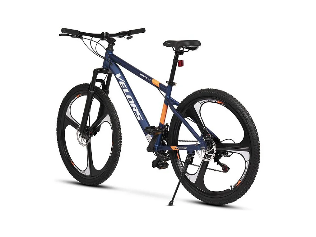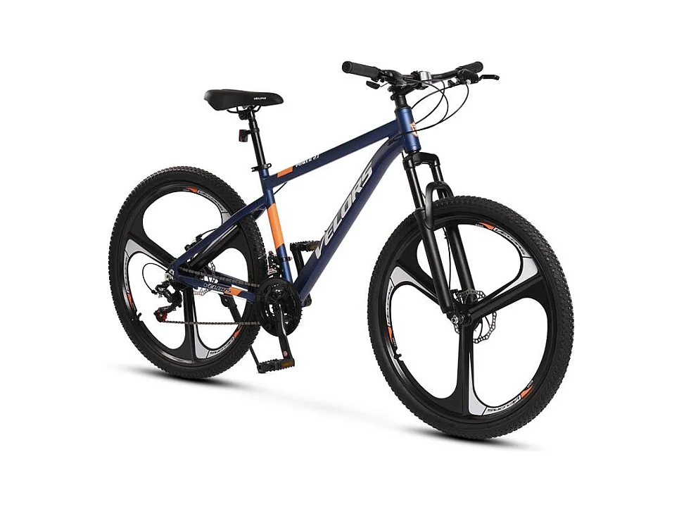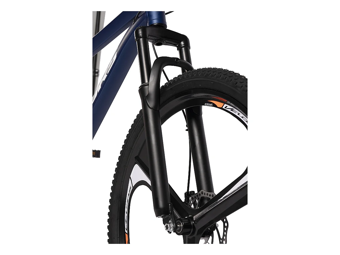 VTT transmission 21 vitesses, semi-rigide en aluminium, freins à disque mécaniques, fourche à suspension, bleu (141 x 73 x 20 cm)
