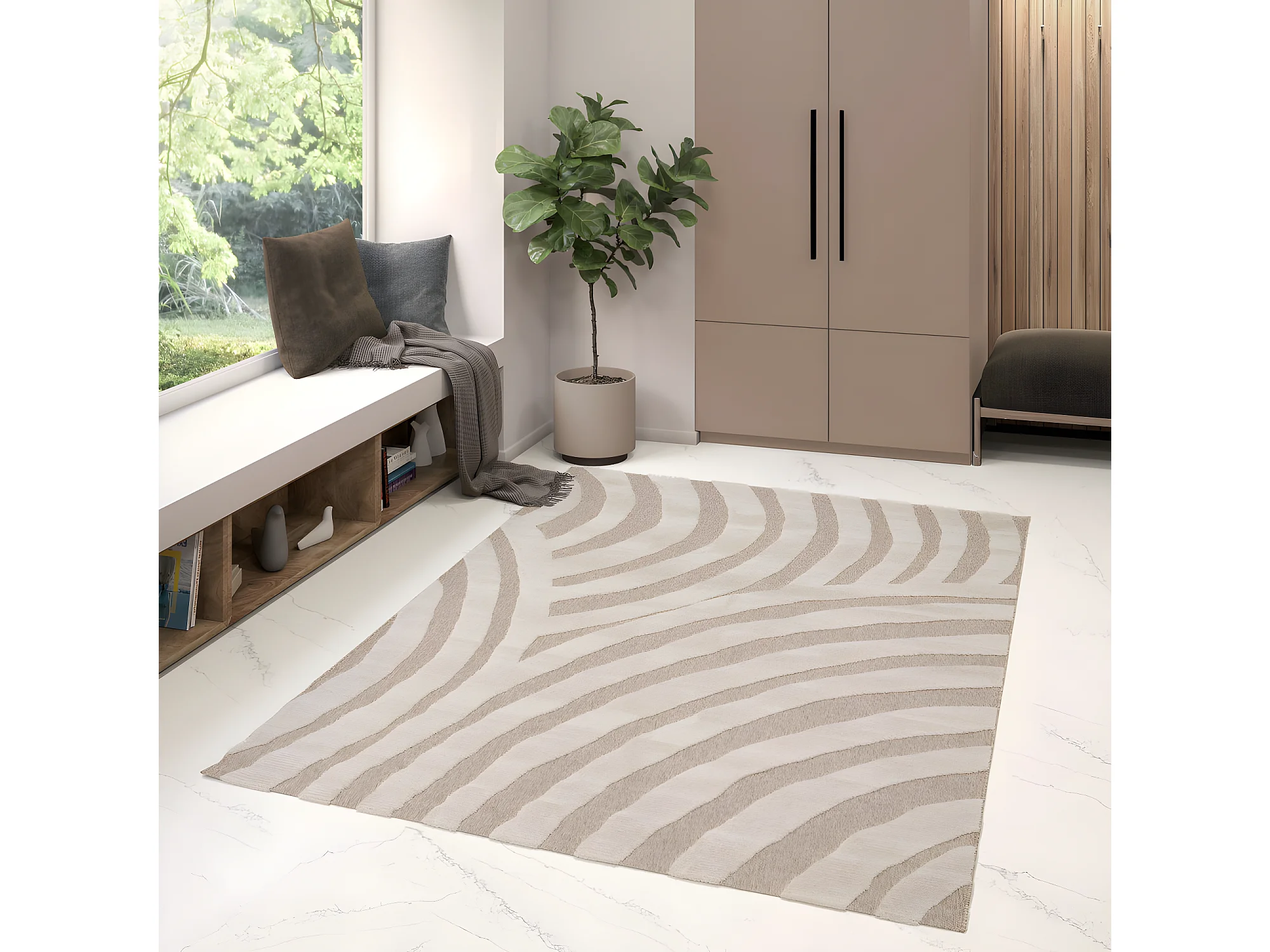 Mona - Tapis contemporain à motif organique - Beige - 160x230cm