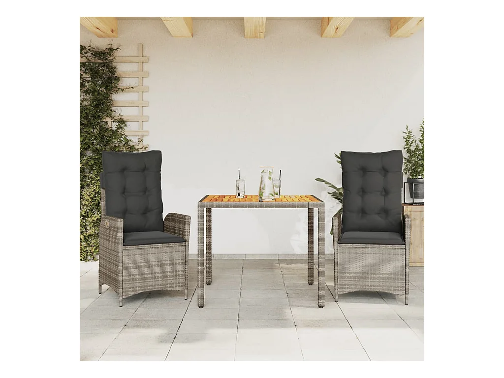 Wanda Ensemble à manger de jardin 3 pcs coussins gris résine tressée