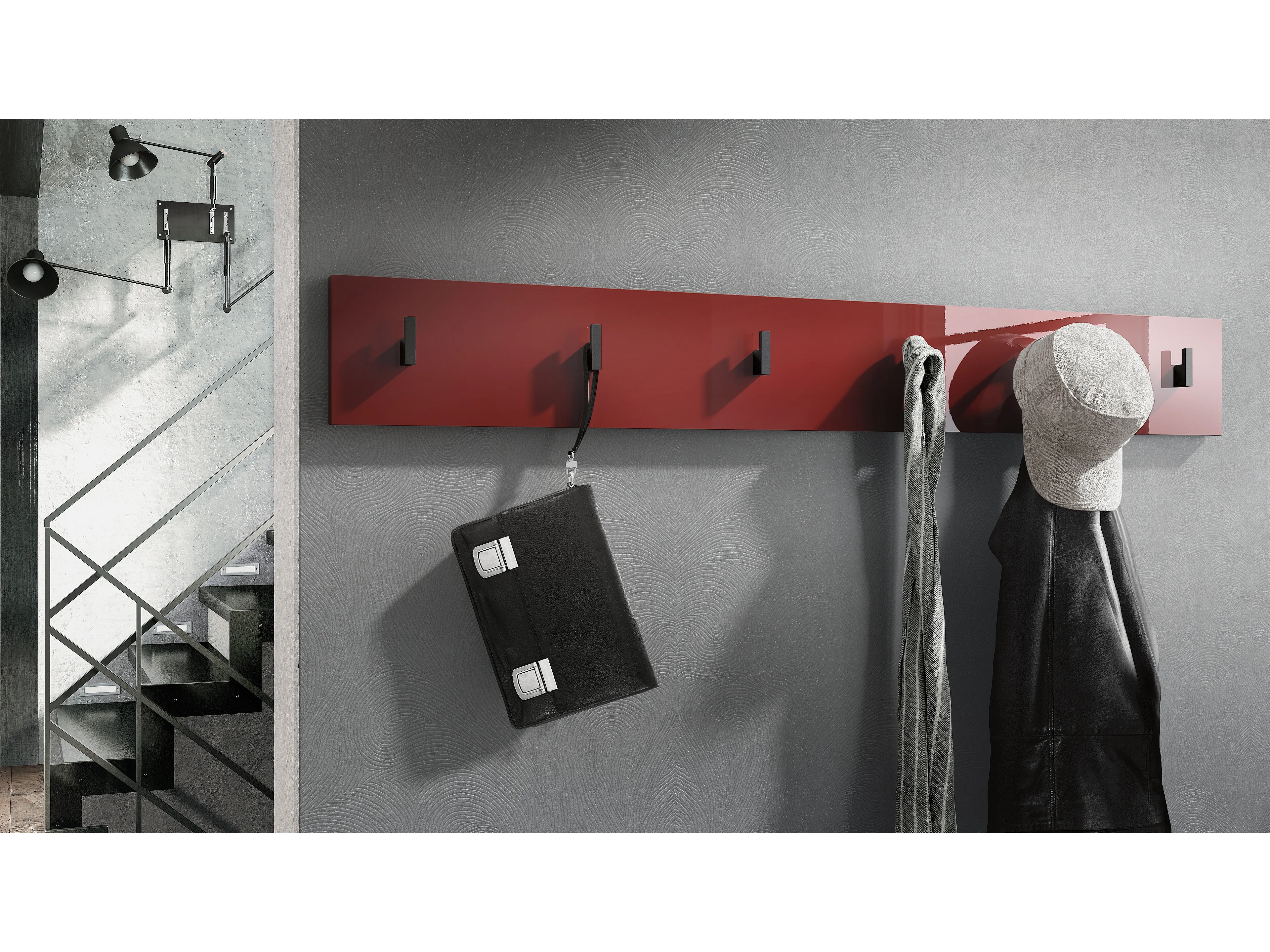 Wandgarderobe Garderobenleiste Garderobenpaneel Linea V2 in Bordeaux Hochglanz