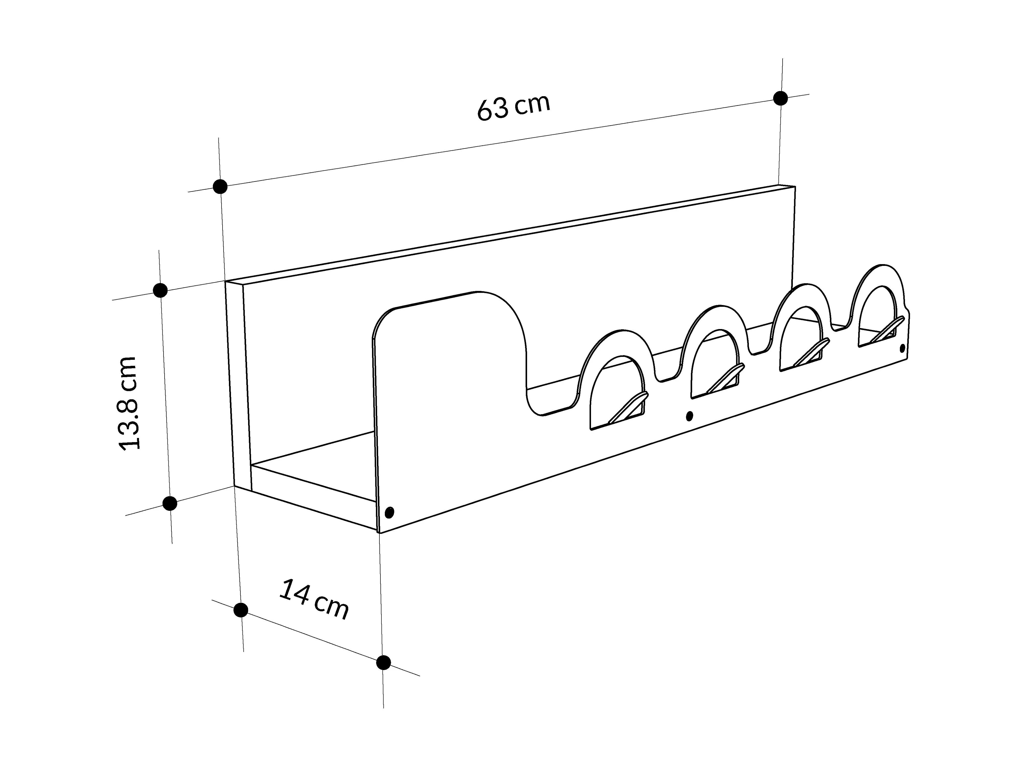 Decortie Chêne 1.8x74.6x26.6cm Porte-manteau mural avec 5 crochets, aggloméré, métal avec étagère de rangement Trace