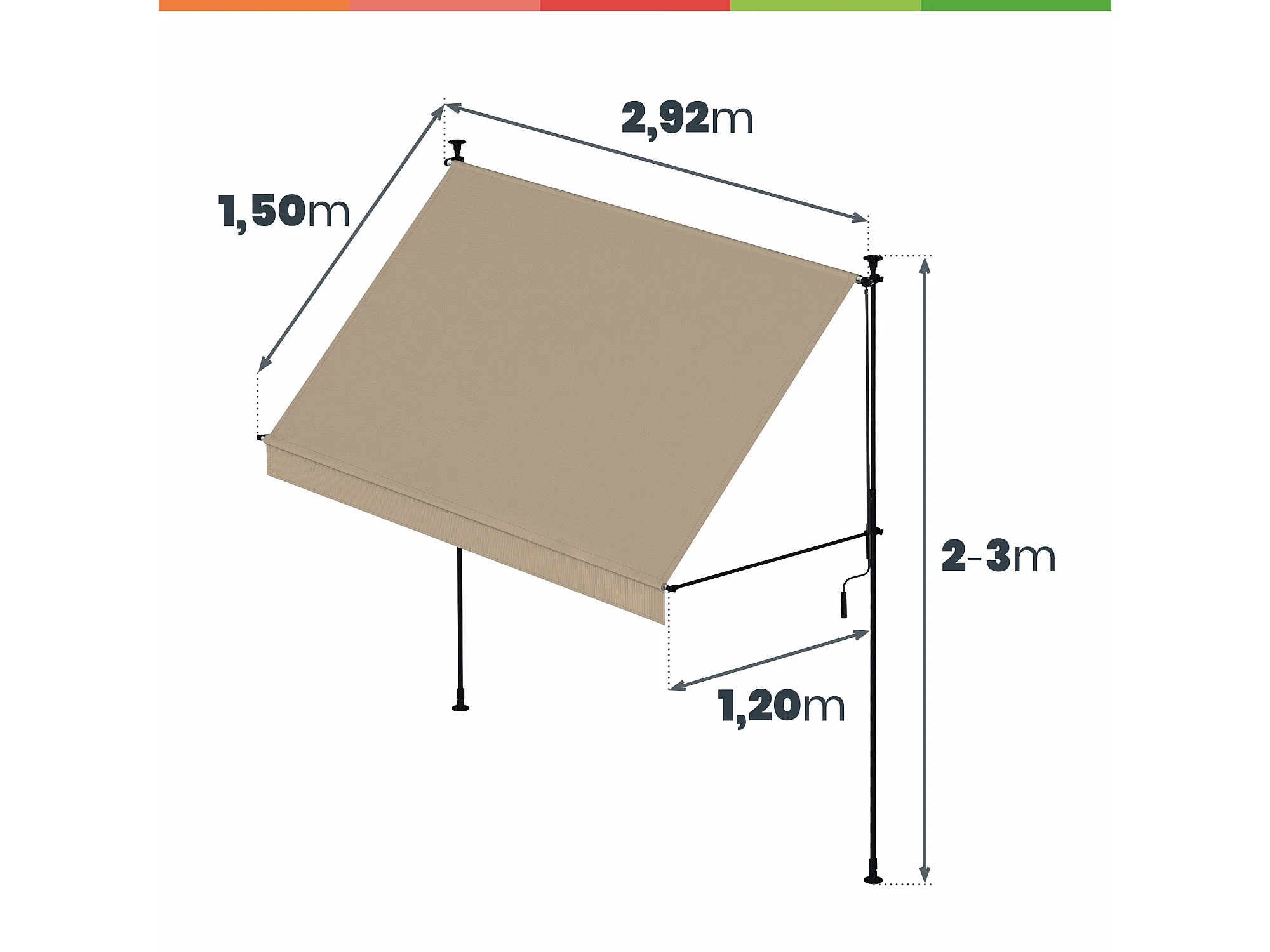 Wasabi - Store Banne Manuel Cityline Beige - Auvent Portable Réglable - 3x1,2m - Toile Polyester UV - Inclinaison Réglable