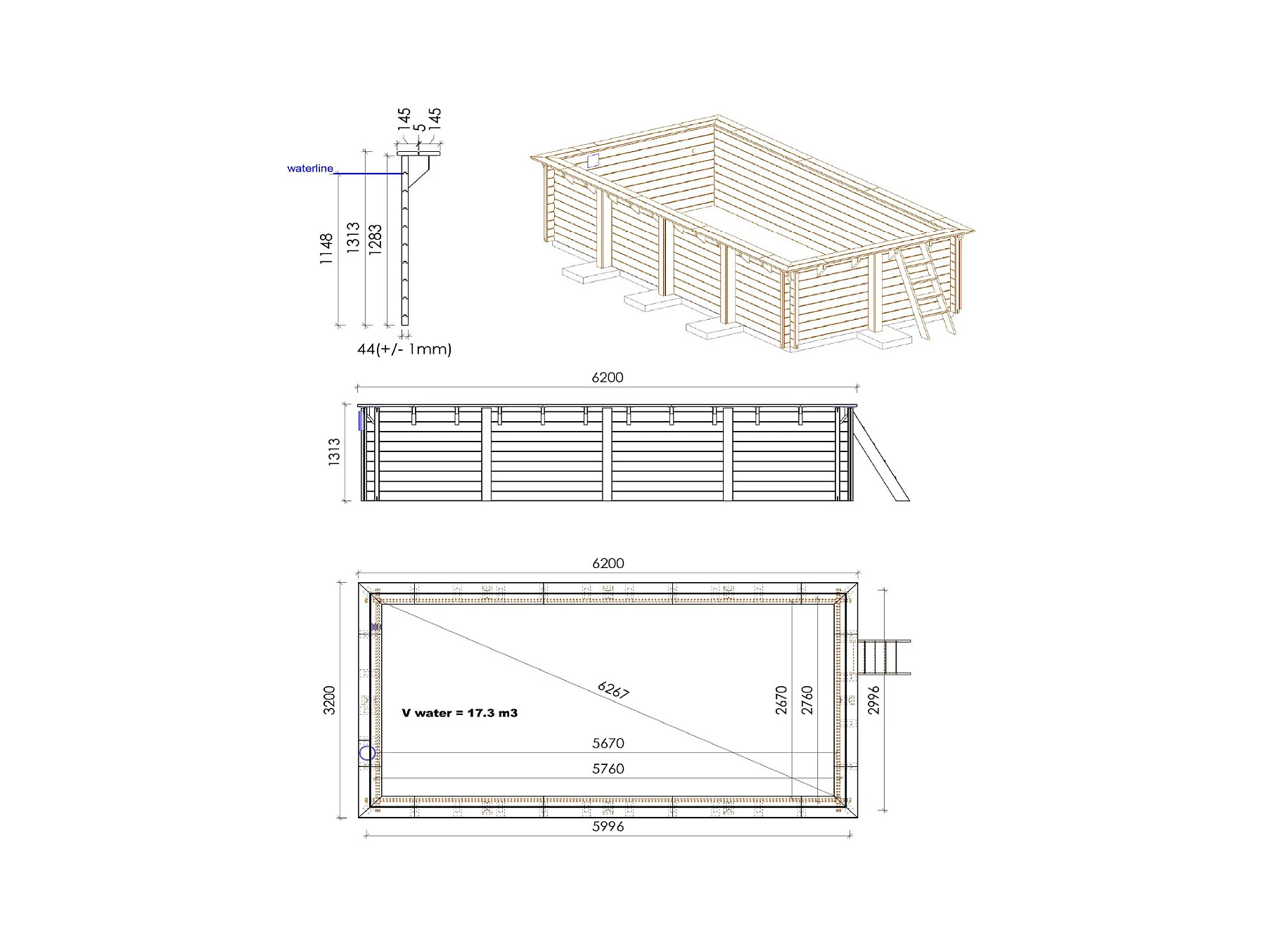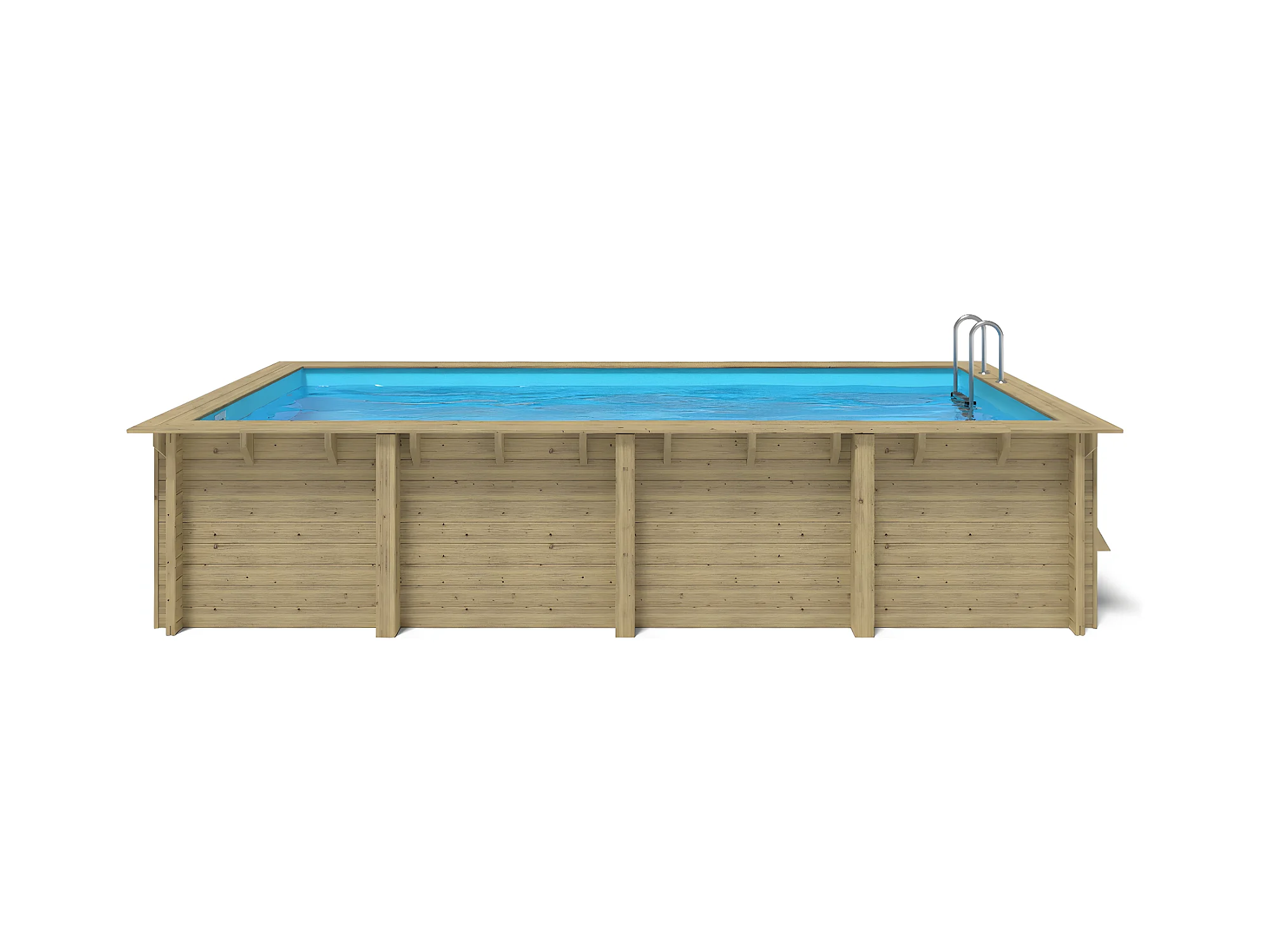 WATERCLIP - Piscine bois rectangulaire 620 x 300 cm - Autoclave IV - Liner 70/100 - Rainurée languette + Filtration 11m3/h + Echelle - ELLY