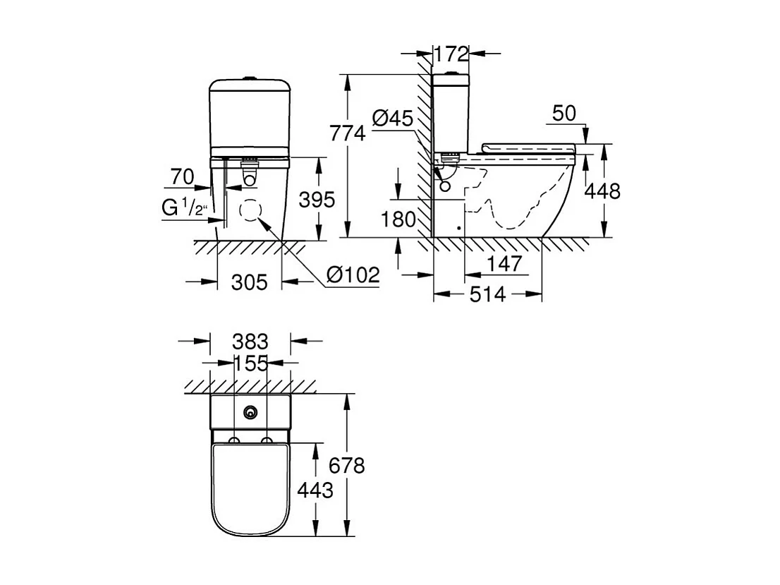 WC à poser sans bride GROHE Euro Ceramic + Tabouret physiologique Blanc
