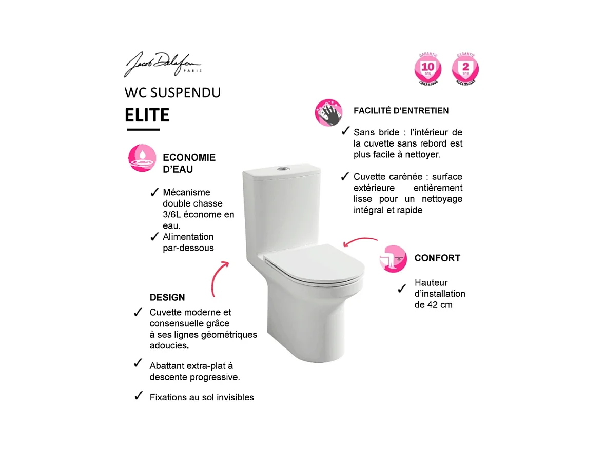 WC au sol sans bride JACOB DELAFON Elite + tabouret physiologique bois