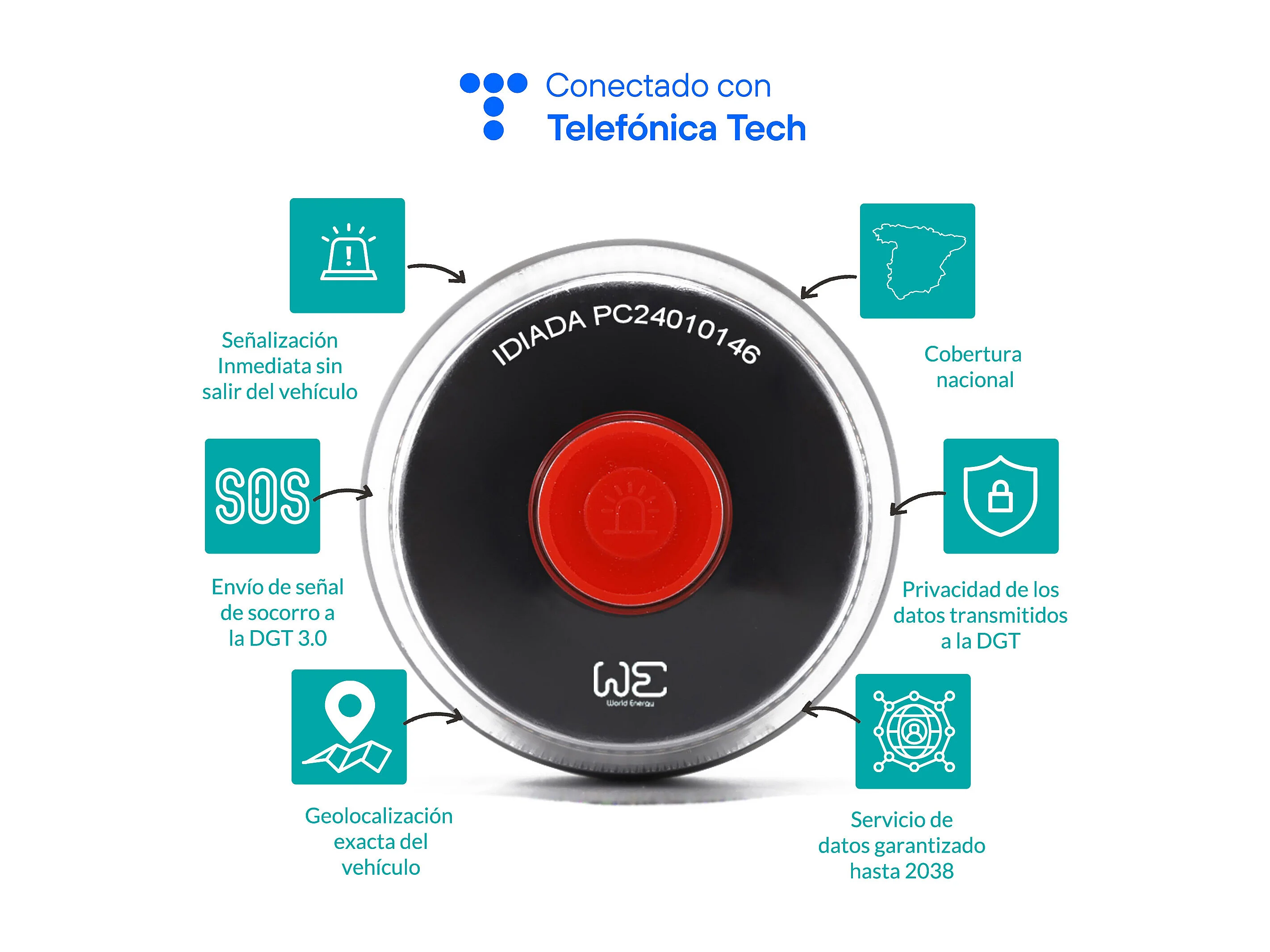 WE Ensemble de balise de secours V16 géolocalisée et reliée à la DGT 3.0 + Gilet réfléchissant 100% Polyester 12mr/m2