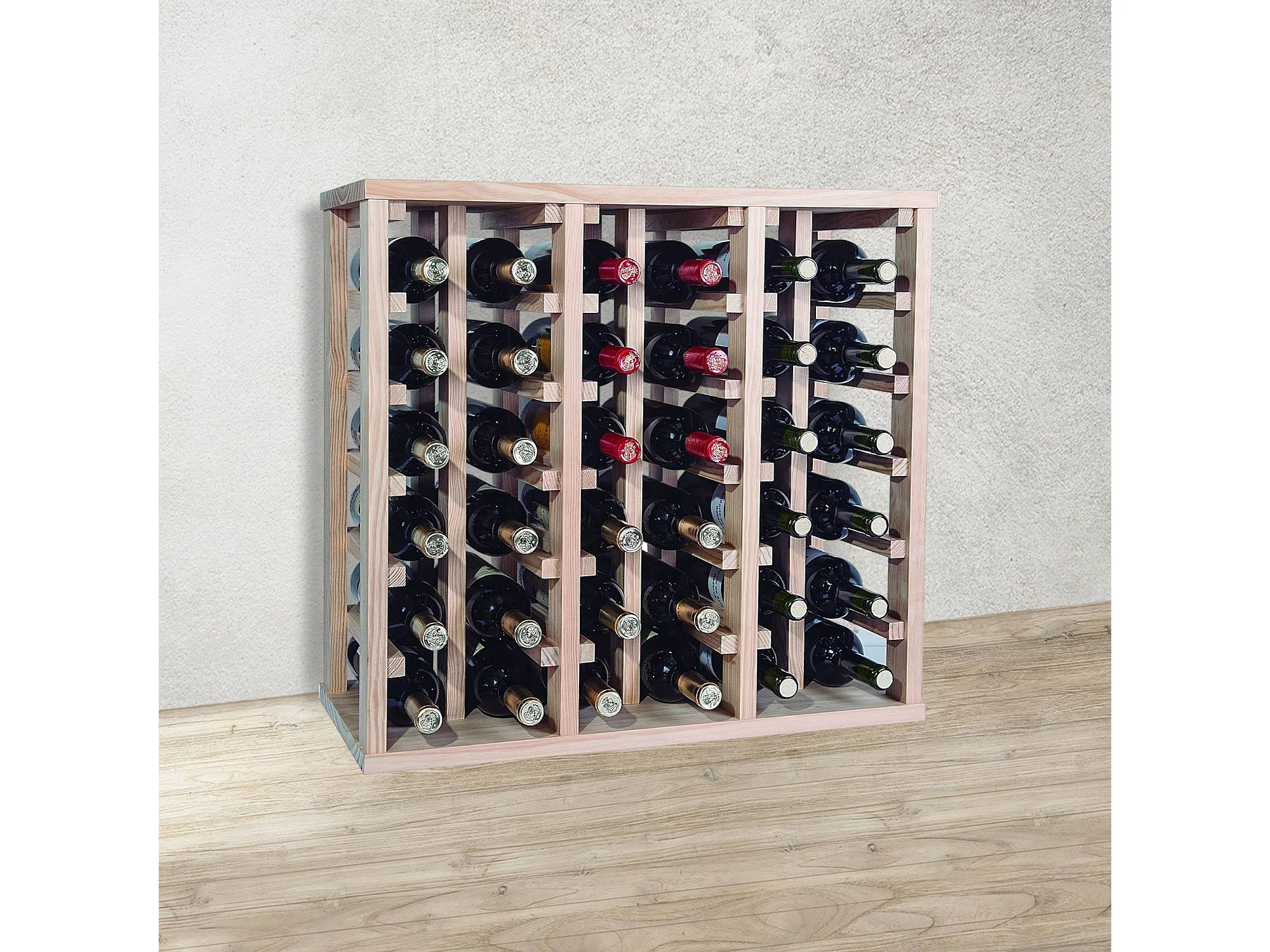 WELL HOME - Casier à bouteilles en bois de pin 36 étagères NON VERNI