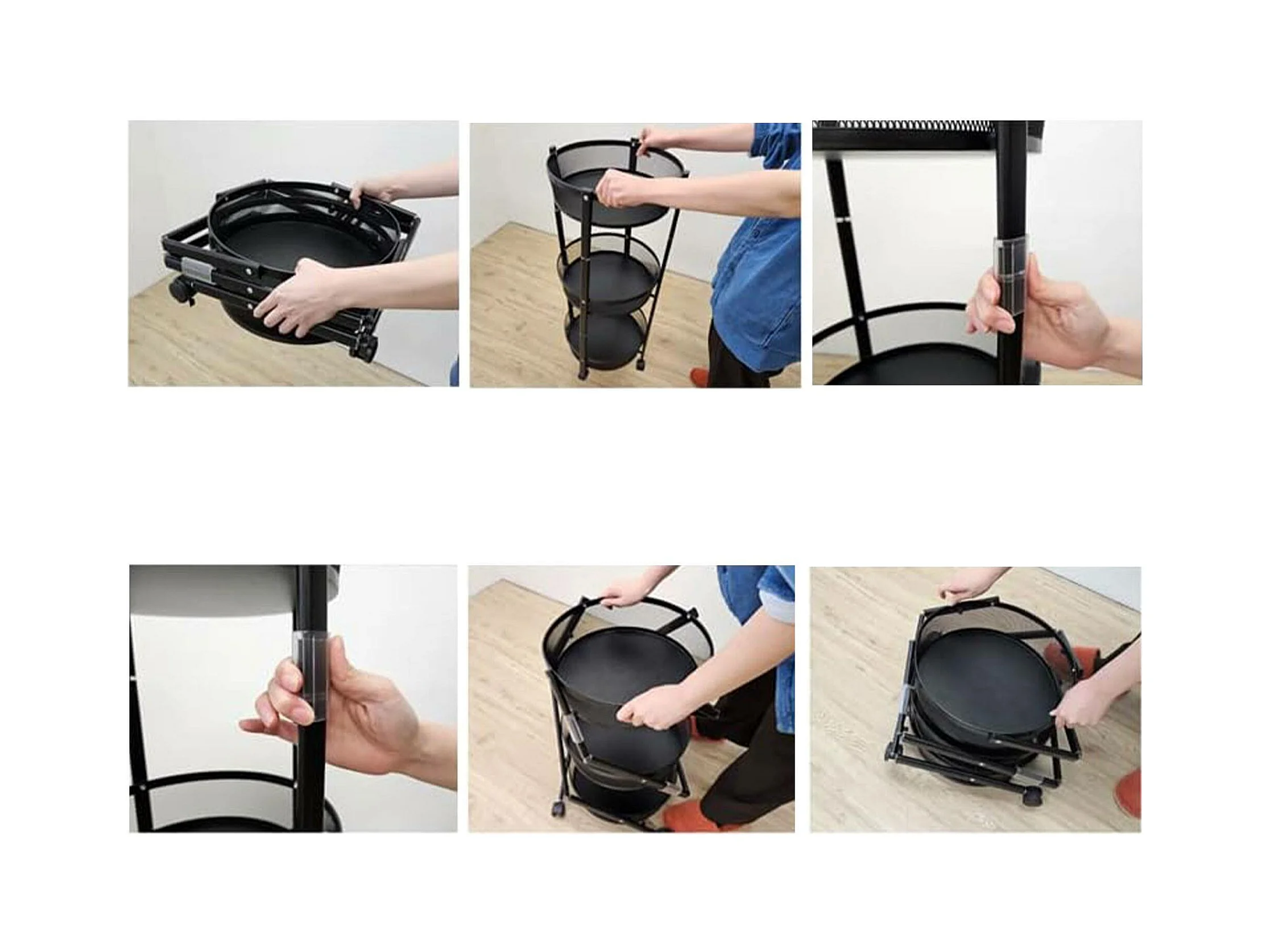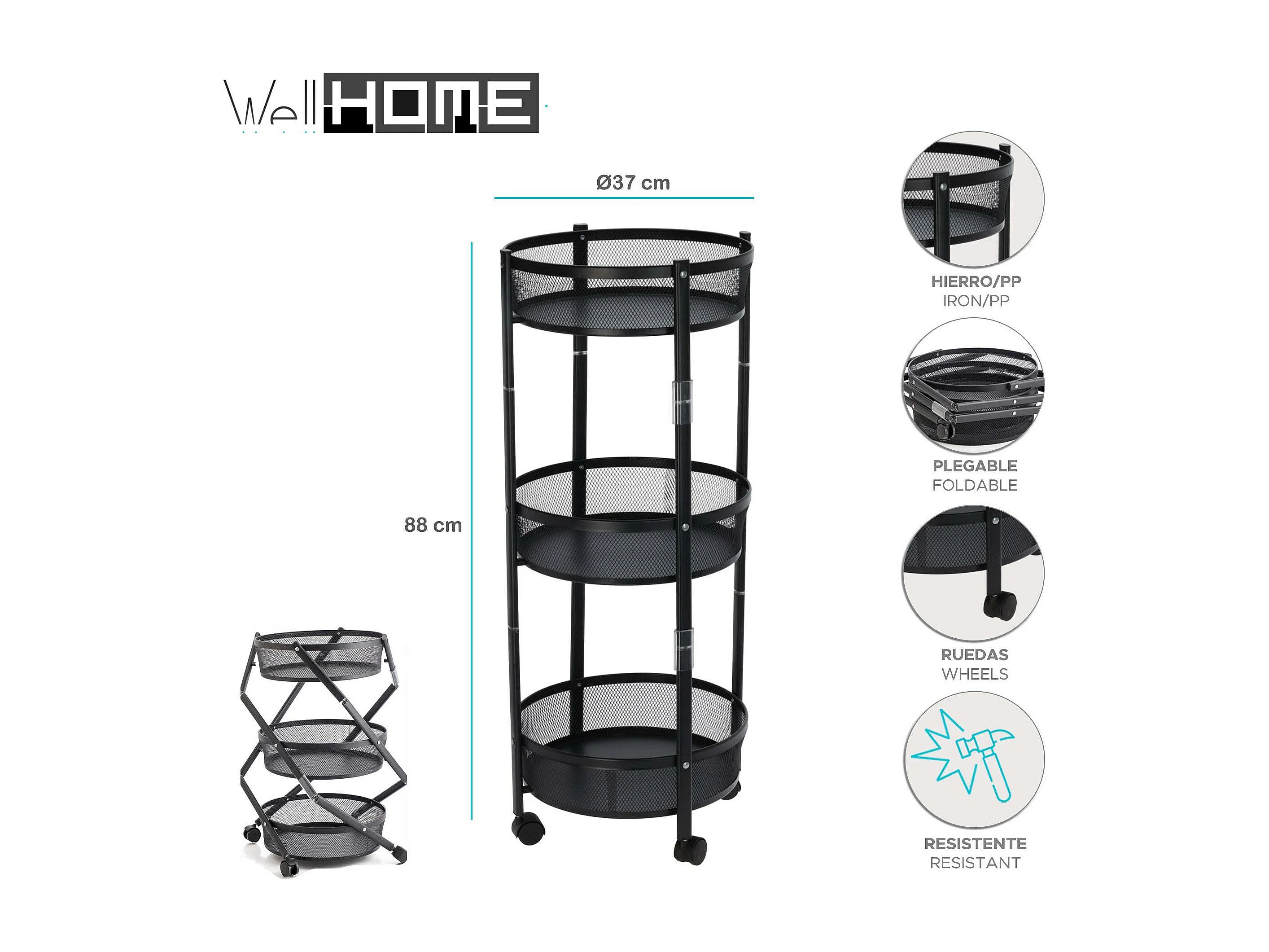 Well Home Chariot de cuisine pliant à roulettes Ø37x88cm