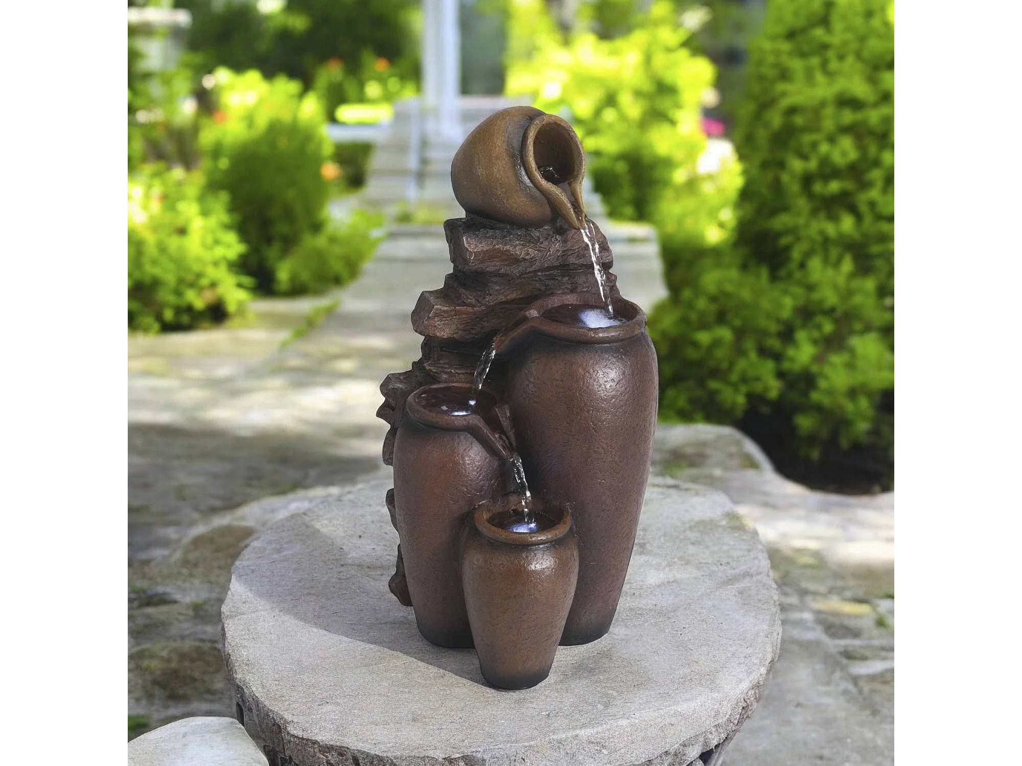 Fontaine de jardin ZENYATTA LED Marron