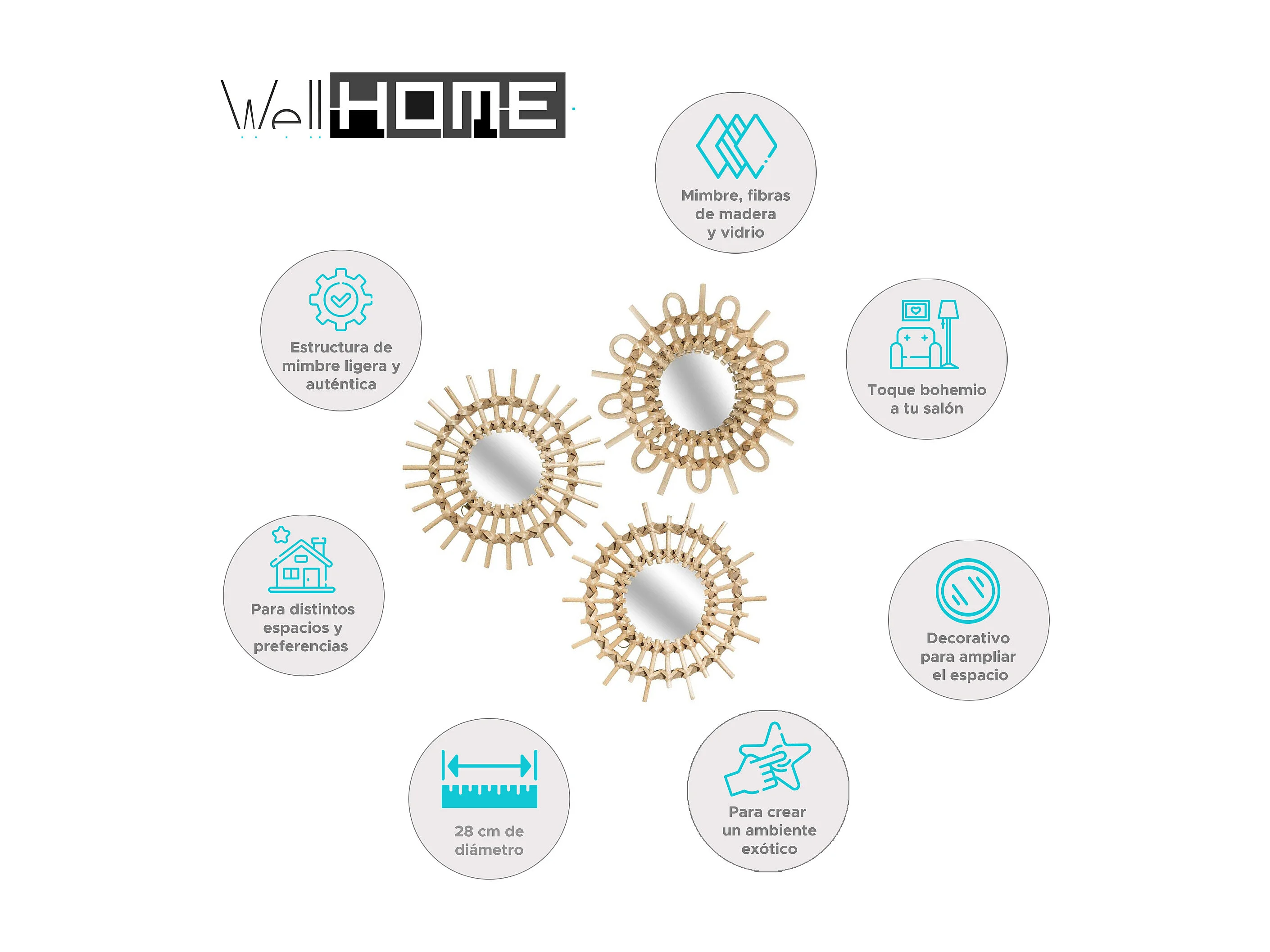 WELL HOME - Lot de 3 miroirs Aida diamètre 28 cm