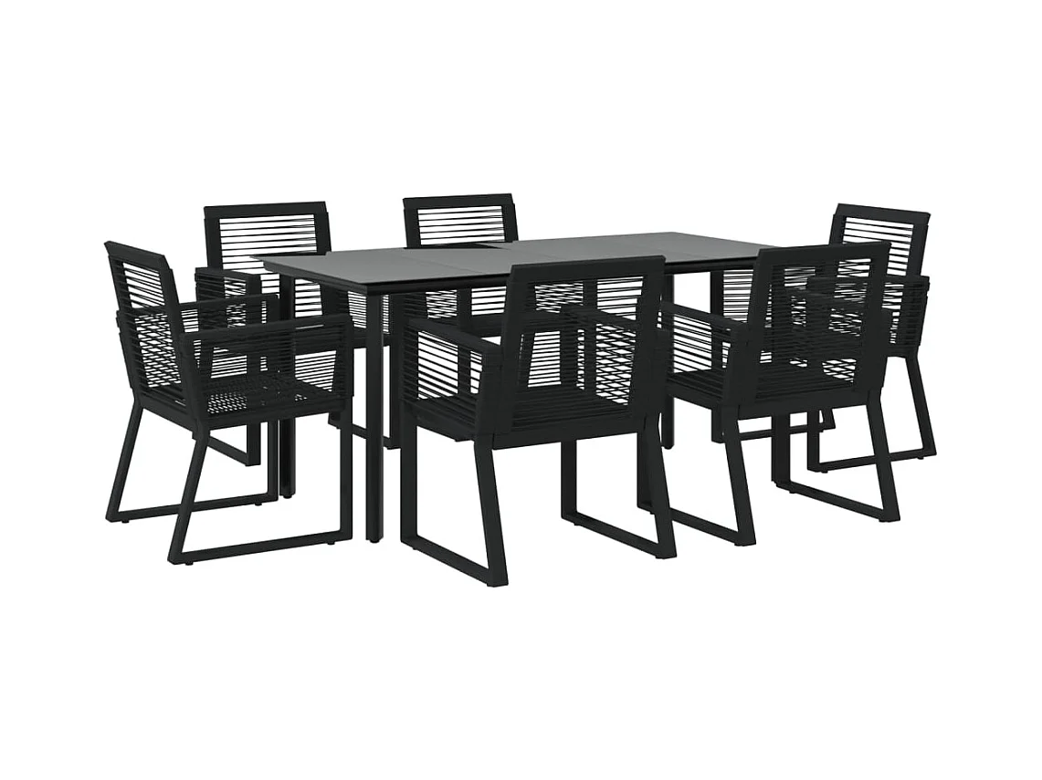 Wendell Ensemble à manger de jardin 7 pcs Noir Rotin PVC