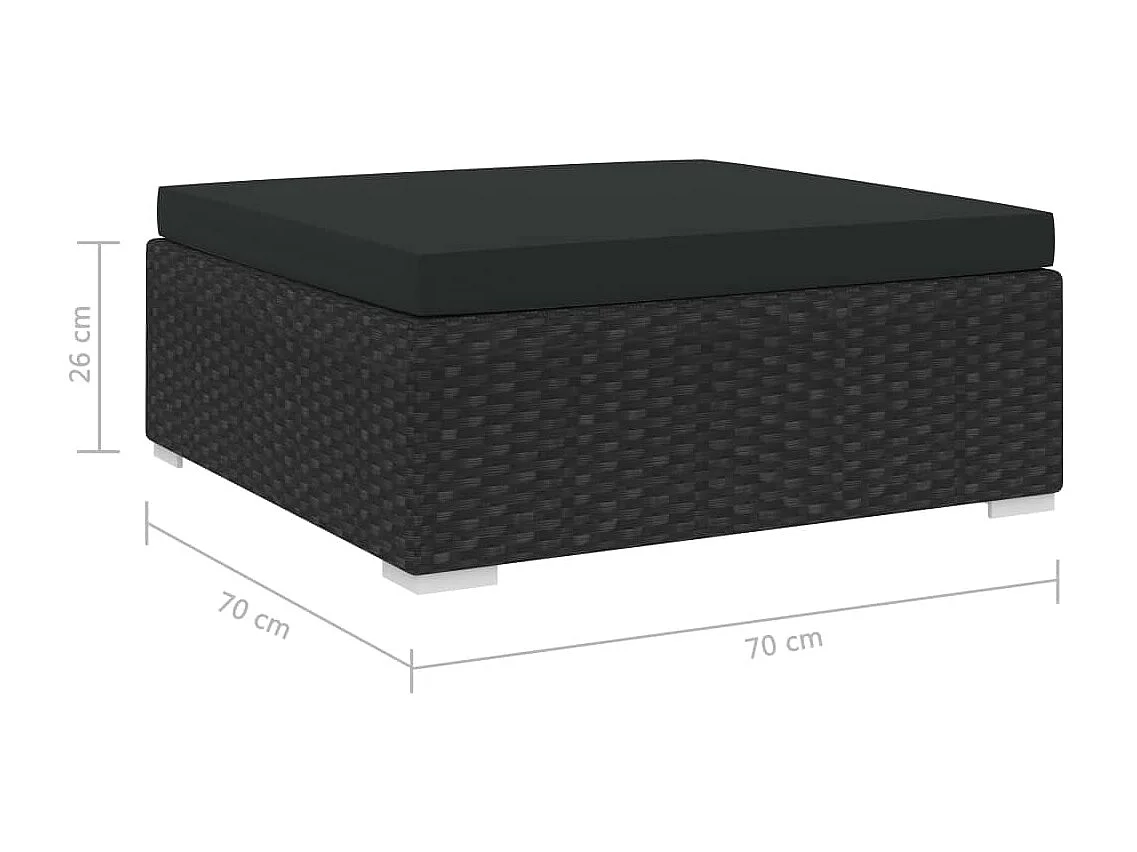 Layla Hope Repose-pied de jardin coussin Noir 70x70x30 cm Résine tressée