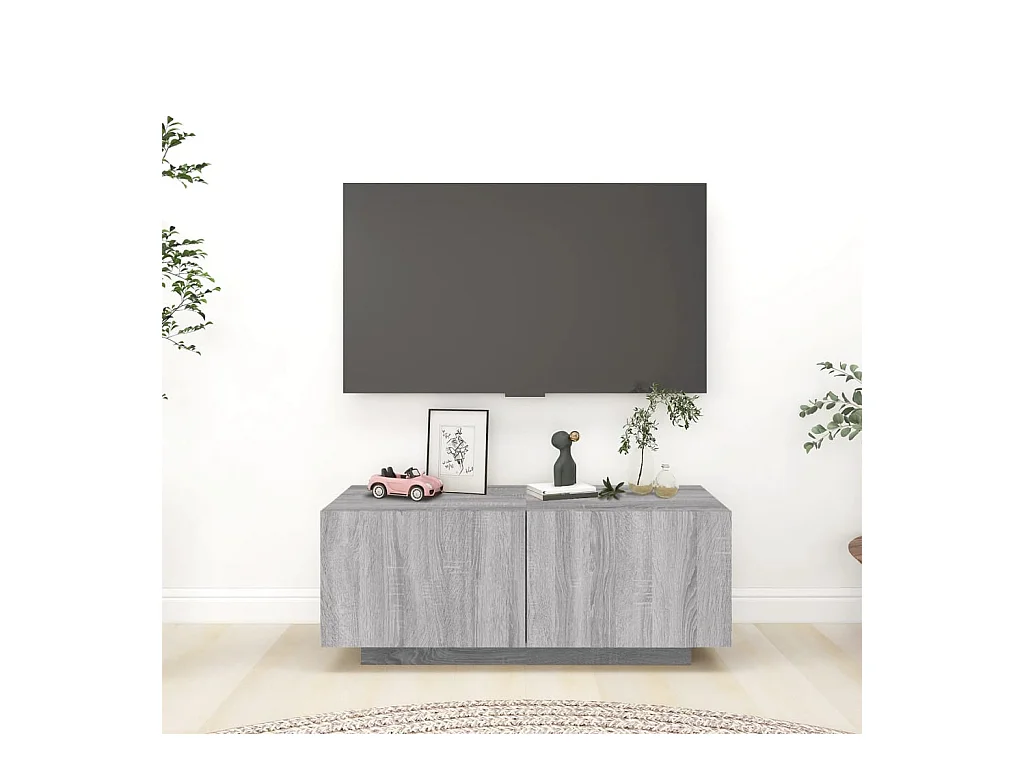Lin Meuble TV gris béton 100x34,5x44,5 cm bois d'ingénierie
