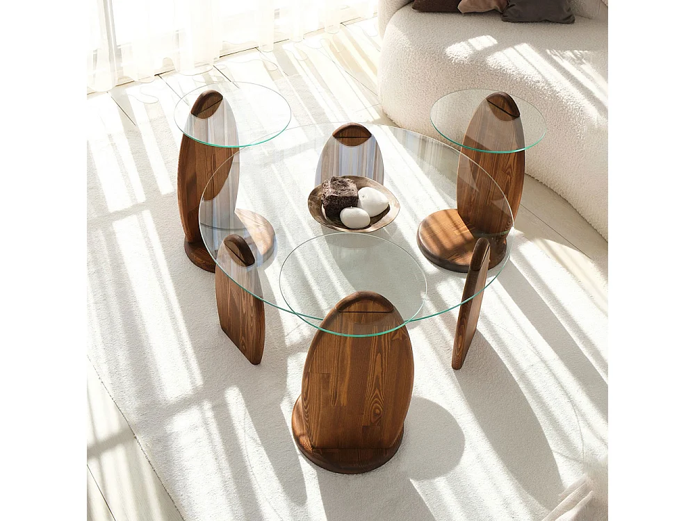 Wo - Table basse ronde en verre trempé et bois ø90cm - Transparent