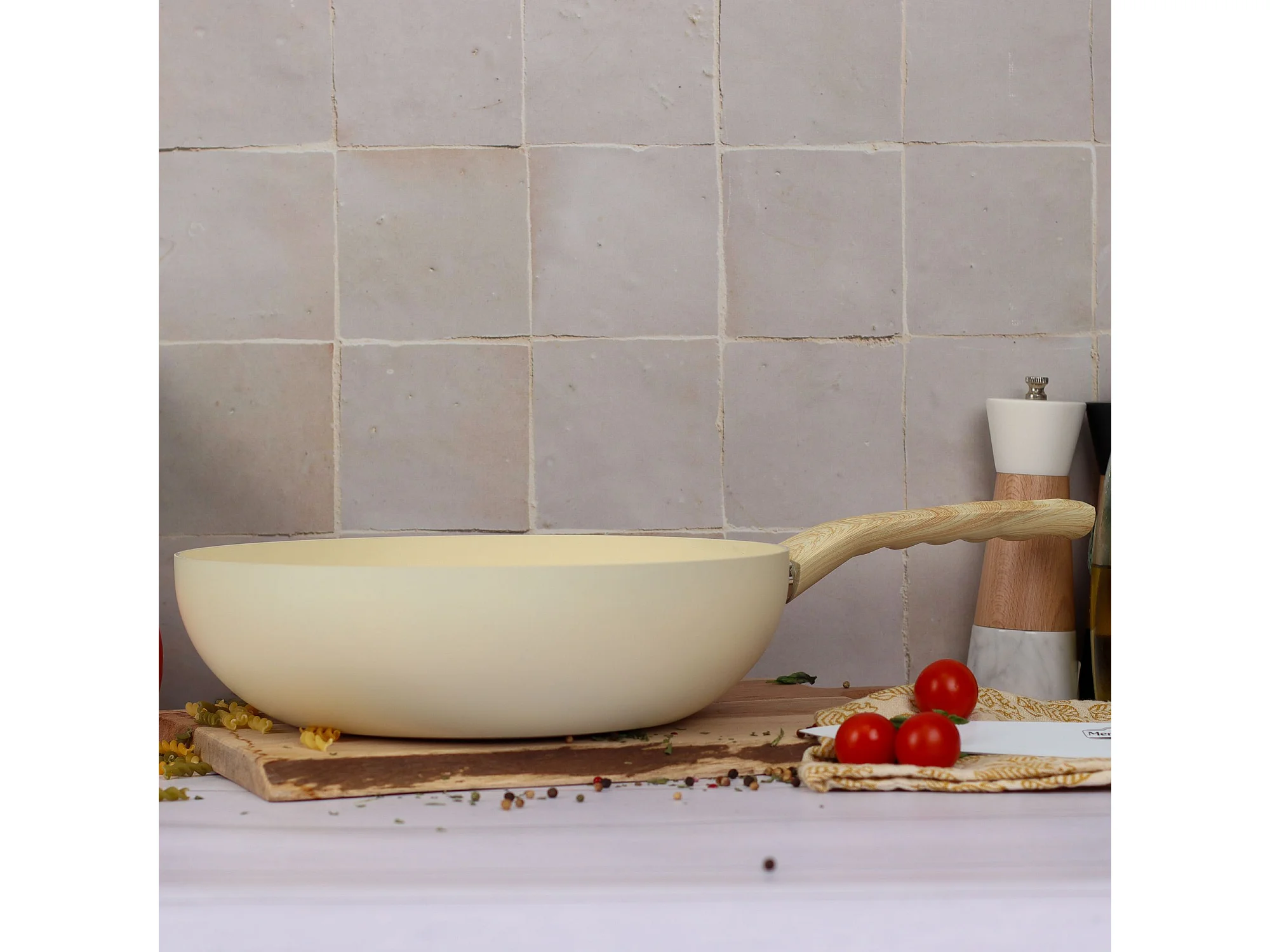 Menastyl - Wok 28cm Colorama Creme - En Aluminium - Revetement Antiadhesif En Ceramique