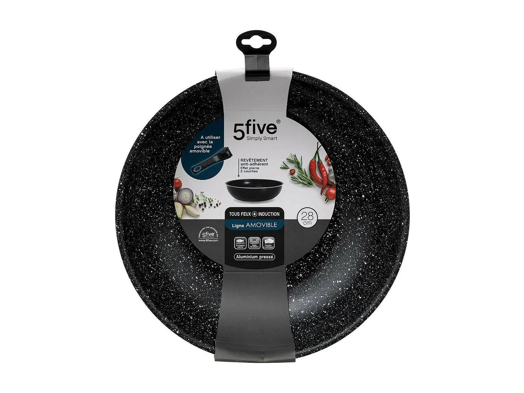 Wok en aluminium induction antiadhésif 28 cm ONYX avec poignée imitation bois revêtement pierre 5 couches