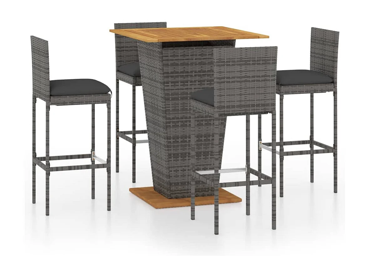 Woodmoor Ensemble de bar de jardin 5 pcs et coussins Résine tressée Gris