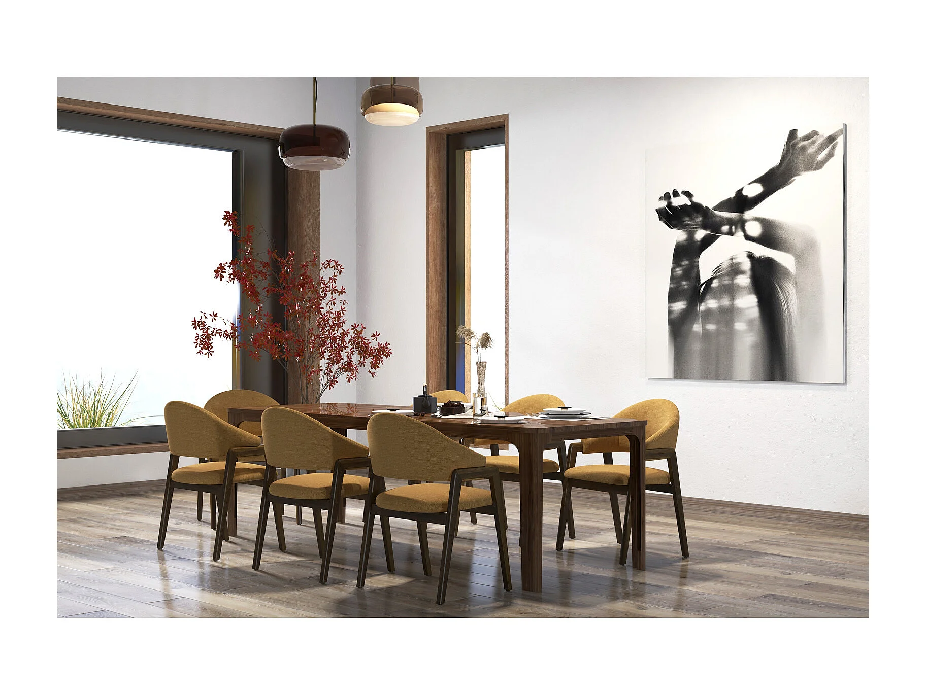 WOOL-Chaise en Frêne patiné noyer et Tissu Trendy Safran (x2)