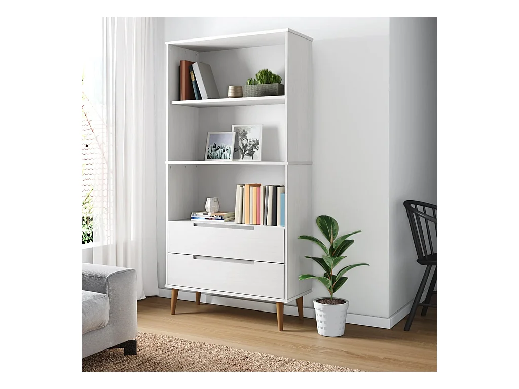 Ximena Luz Bibliothèque MOLDE Blanc 85x35x170,5 cm Bois massif de pin