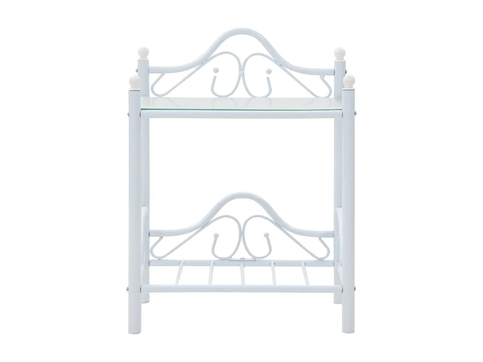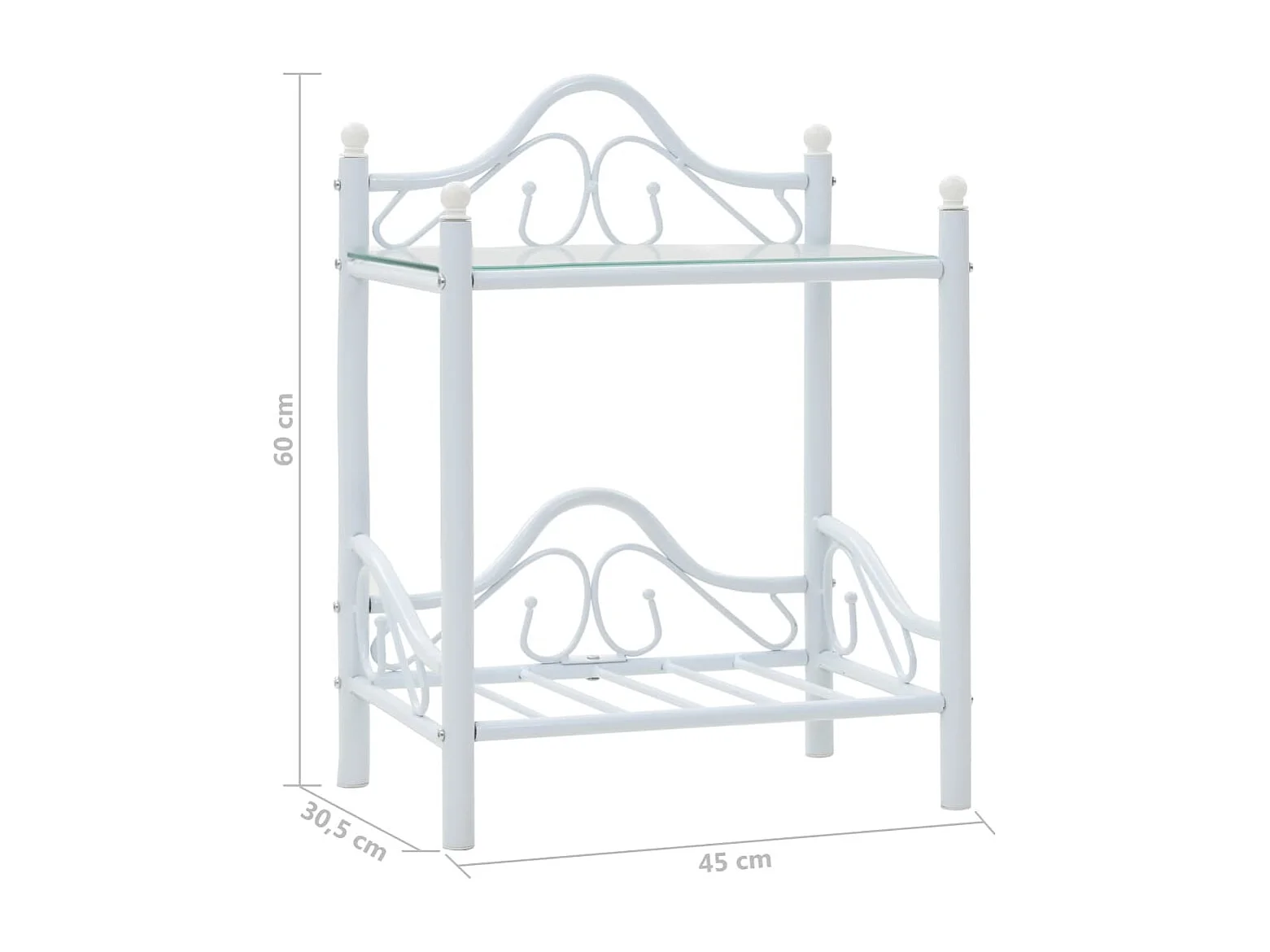 Xylith Table de chevet Acier et verre trempé 45 x 30,5 x 60 cm Blanc