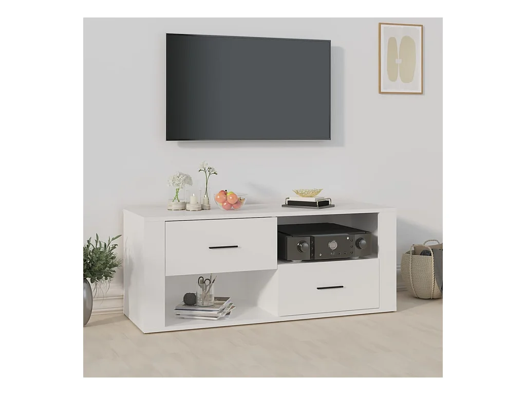 Ibtihal Meuble TV Blanc brillant 100x35x55 cm Bois d'ingénierie