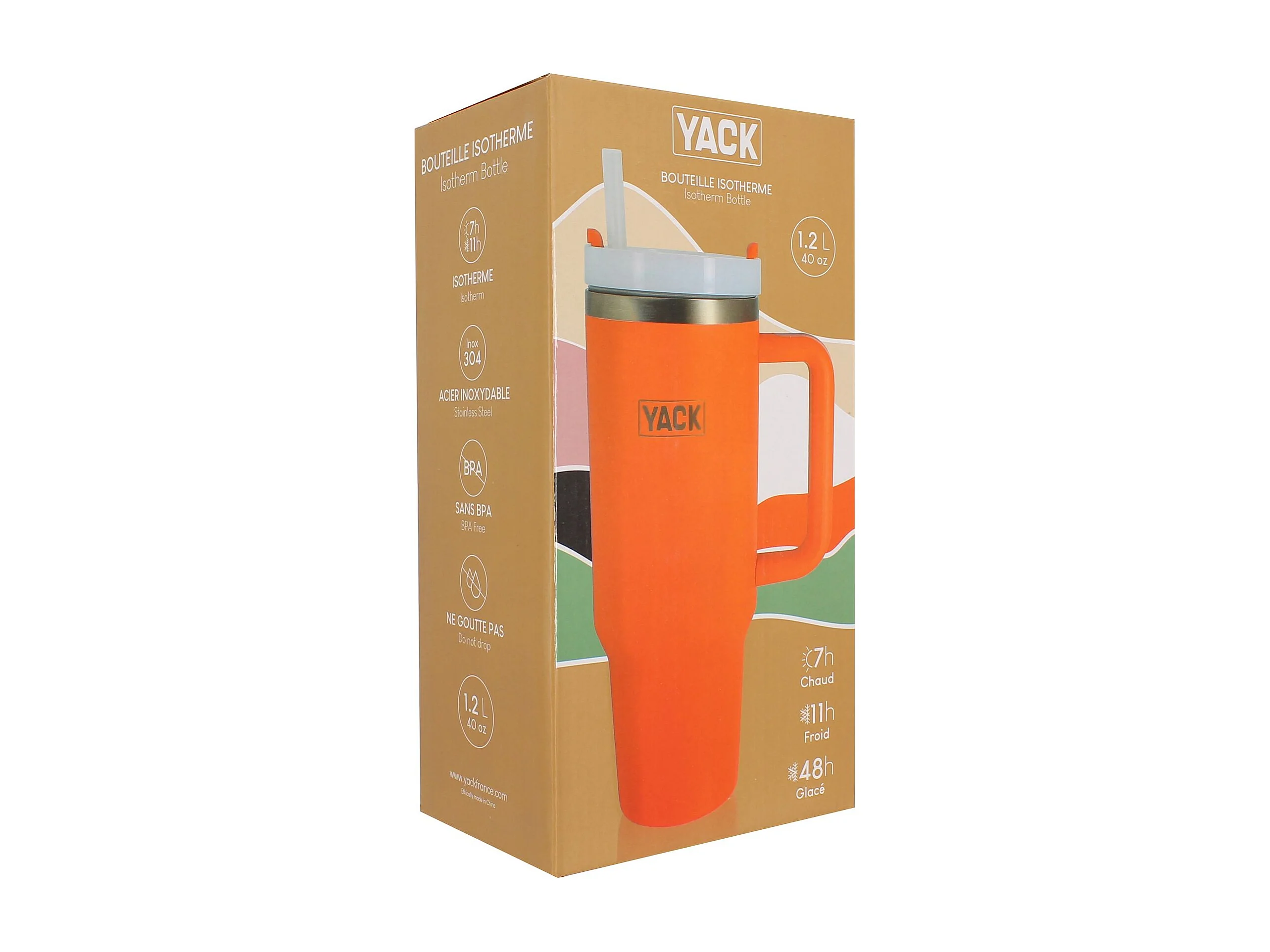 Yack - Gobelet Yack 1.2l En Acier Inoxydable Orange Avec Couvercle Et Paille